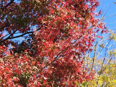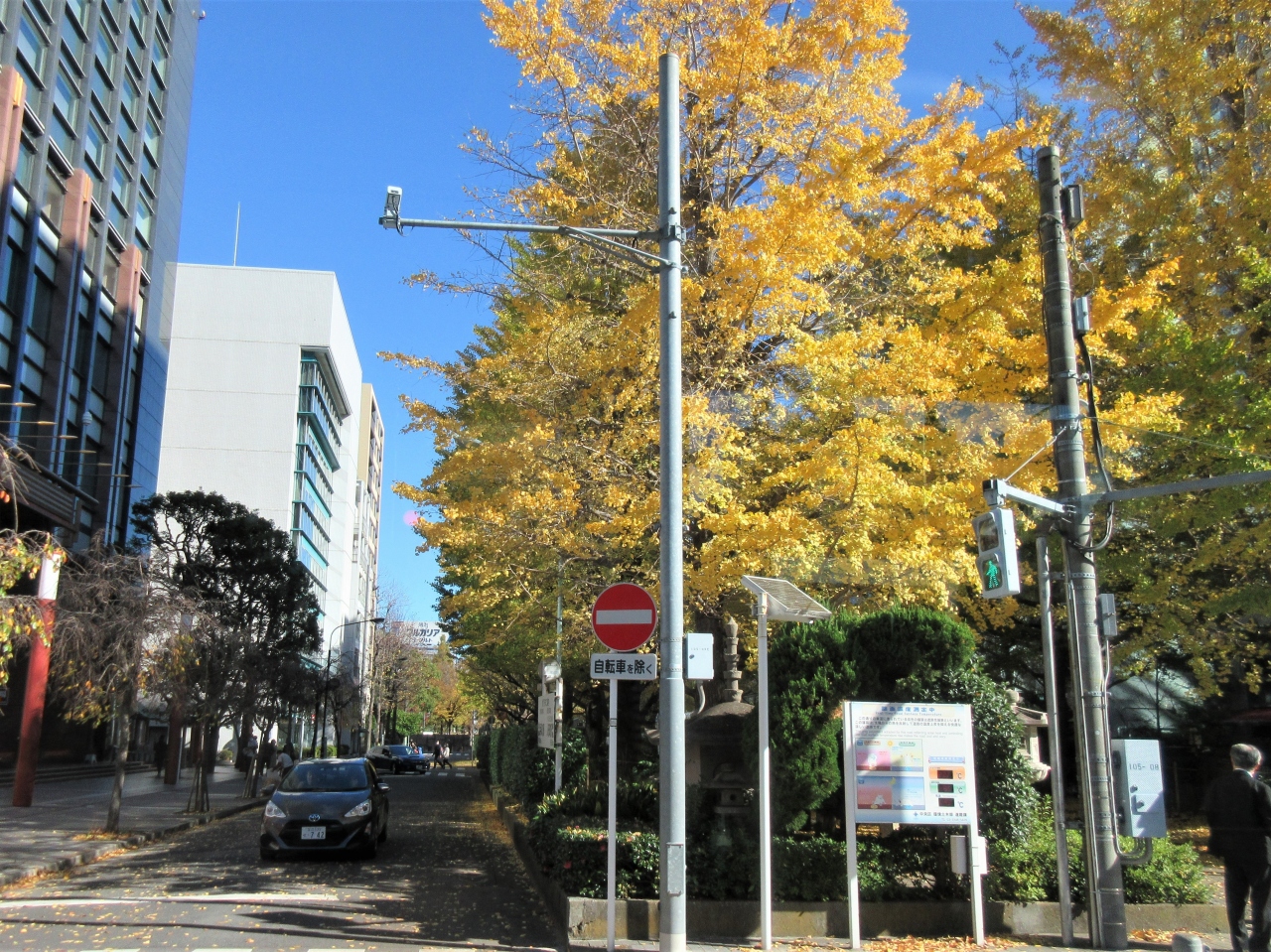 ツバキの花、ピラカンサの赤い実なども見られました。また、明治座前の銀杏並木も浜町公園の一部らしいですが、ちょうど黄葉が綺麗でした。