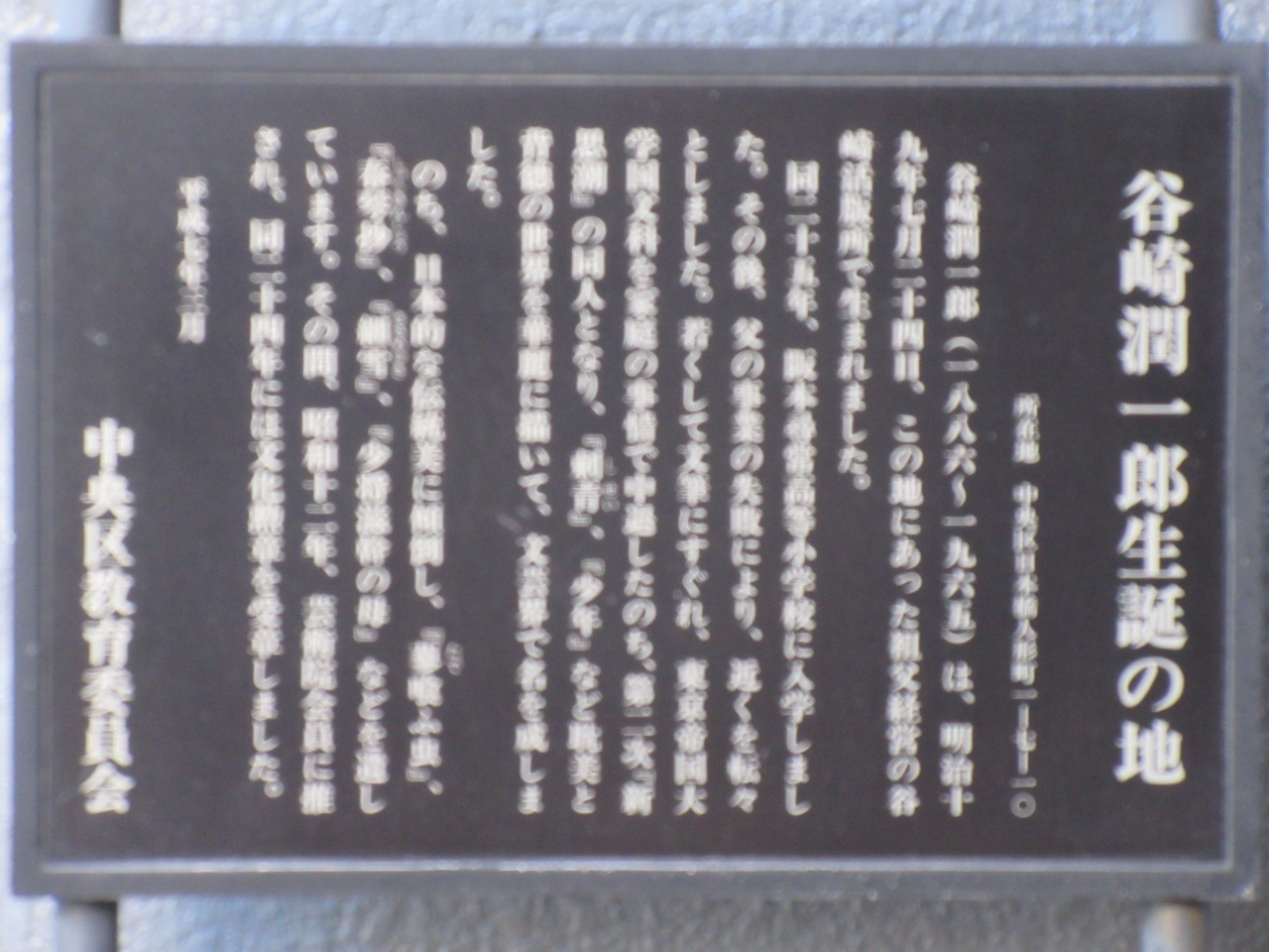 谷崎潤一郎は、1886年(明治19年)に、ここで祖父が経営していた印刷所で誕生したそうです。