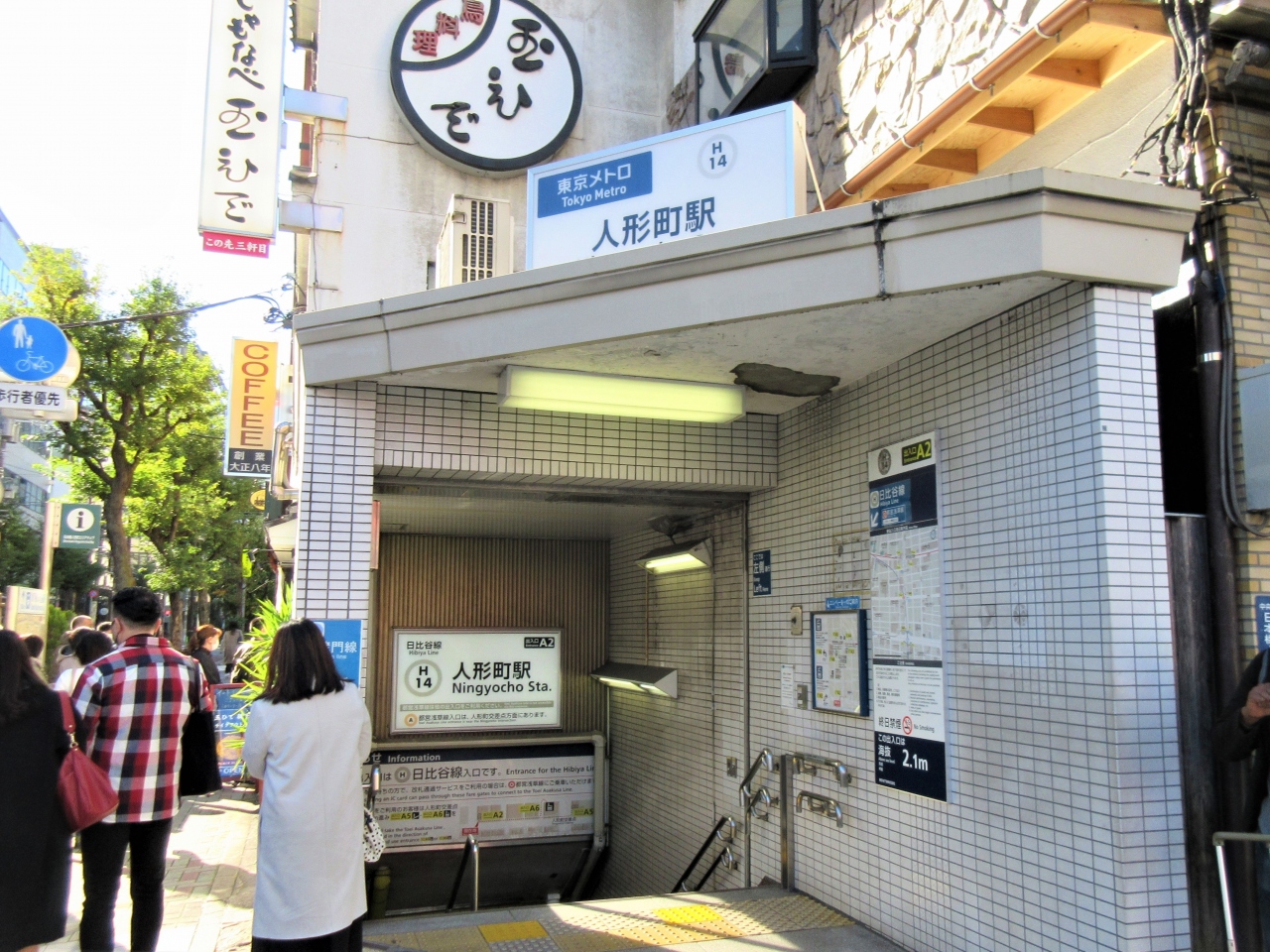 日比谷線の人形町駅で、水天宮寄りの出口A2が気に入っている出入口で、そこがちょうど人形町通りと甘酒横丁の交差点に出るので、私が行きたいところのほとんどがこの近くにあります。