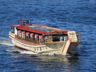 ベンチに座って隅田川を眺めていると、屋形船やモーターボートが通るのが見えて、時間が経つのを忘れました。