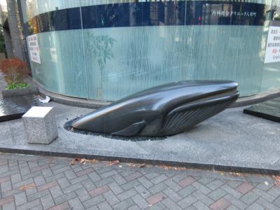 歩道の角にコンクリートから鯨の上半身が出ています! なんで?