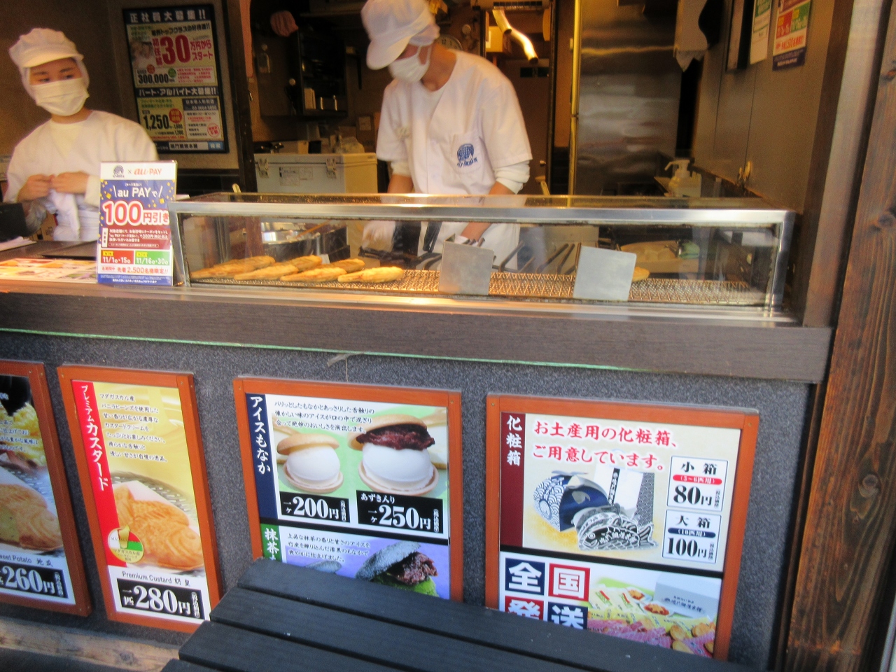 パリッと焼かれた皮は薄くて、すぐに中のあんこが出てきます。たっぷりとあんこが詰まっています。そのあんこが熱々で、上あごを火傷しそうなくらいでした。美味しかったです。1個260円。- 旅行時期