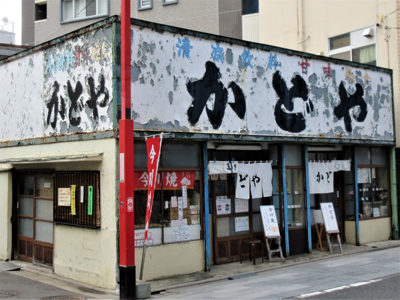 西新井大師参道商栄会の入口にある和菓子屋さんです。商店街の他の店と同様、店舗は改築されていてとても綺麗になっていました。