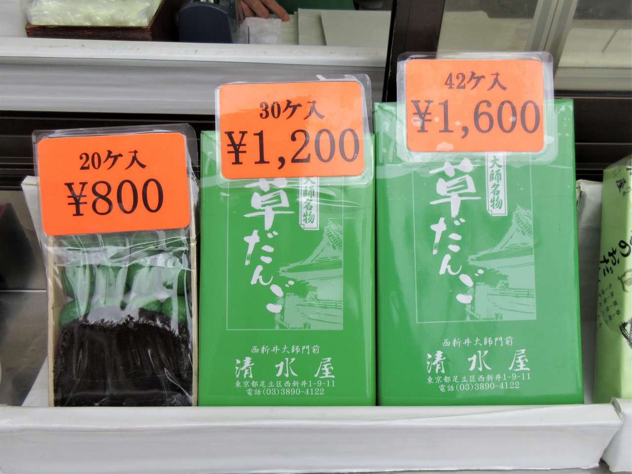 西新井大師を特集するテレビでは必ず登場する、山門前の草だんご屋さんです。参道を挟んだ清水屋さんと両方で、「ひとくちどうぞ食べてみてください」と、つま楊枝に刺した草だんごをひとつ差し出してくれます。