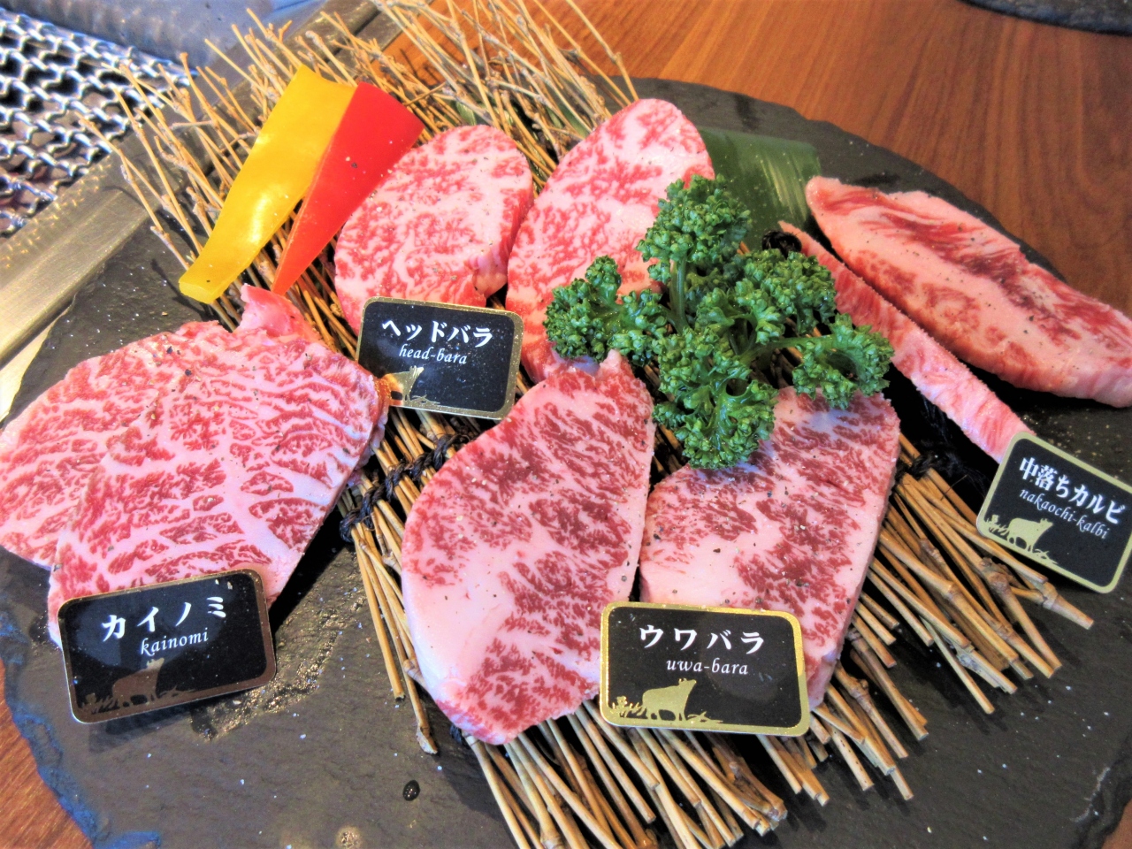 4種類の部位のお肉も和牛で、名前の札もついていてわかりやすくて好印象。
