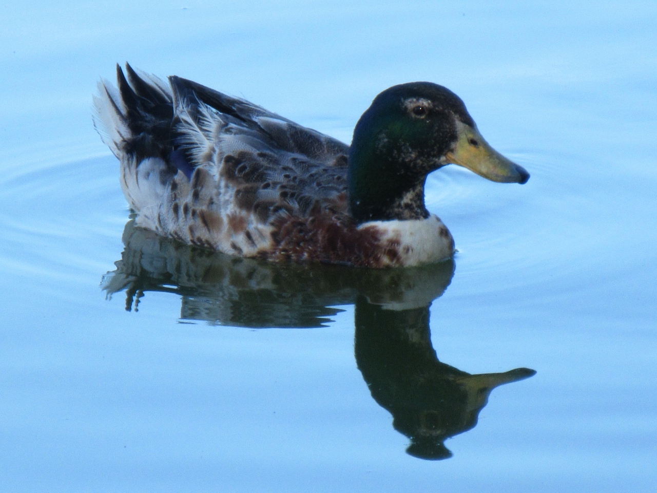 野鳥は、アオサギ、カワウ、マガモなどが。いました。花は少なくて、ムクゲなどが見られました。(アオサギではなく、ゴイサギでした!)