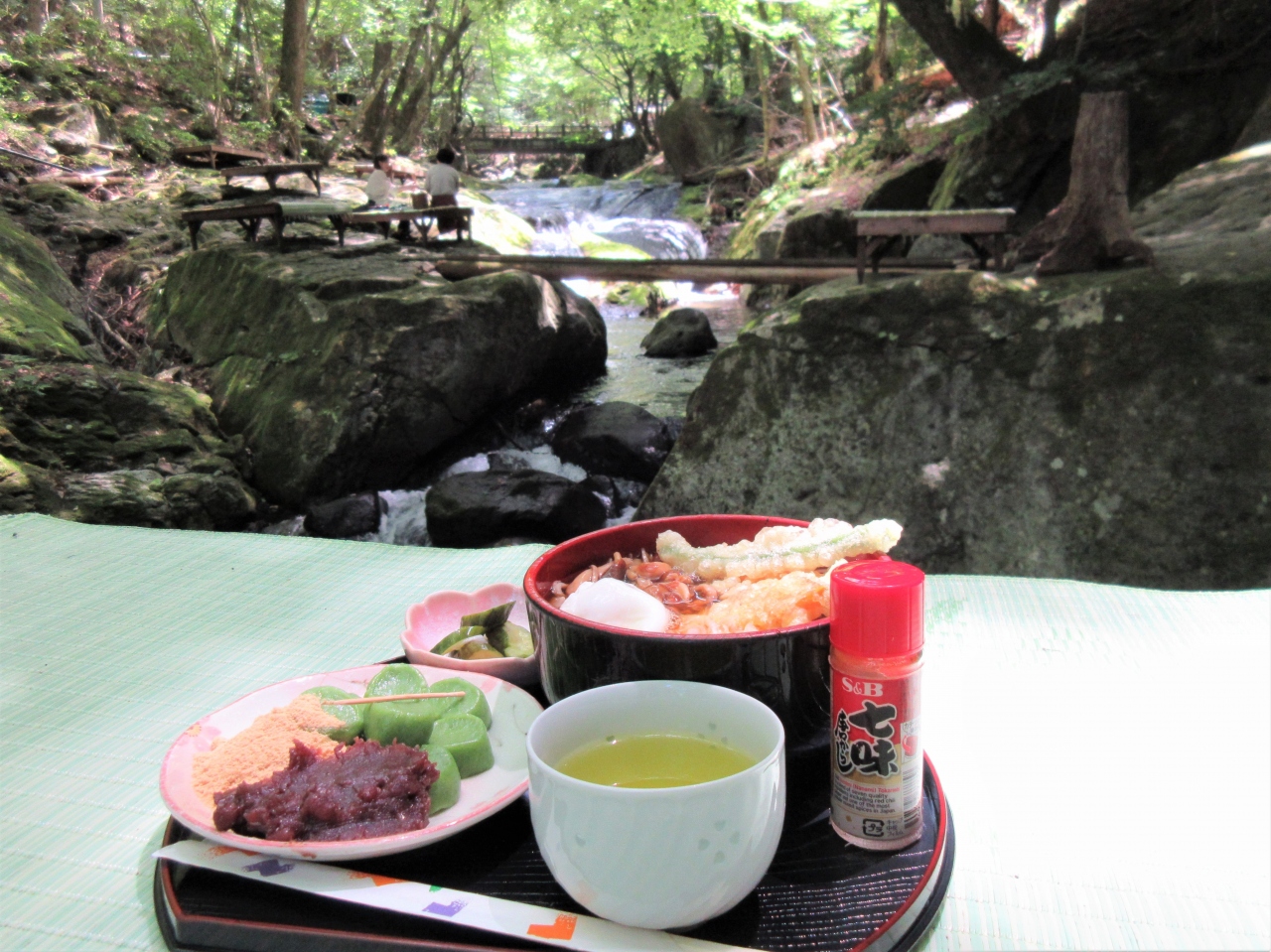 料理の味や質に注目しないで、小太郎ヶ淵の自然を満喫しながら味わってください