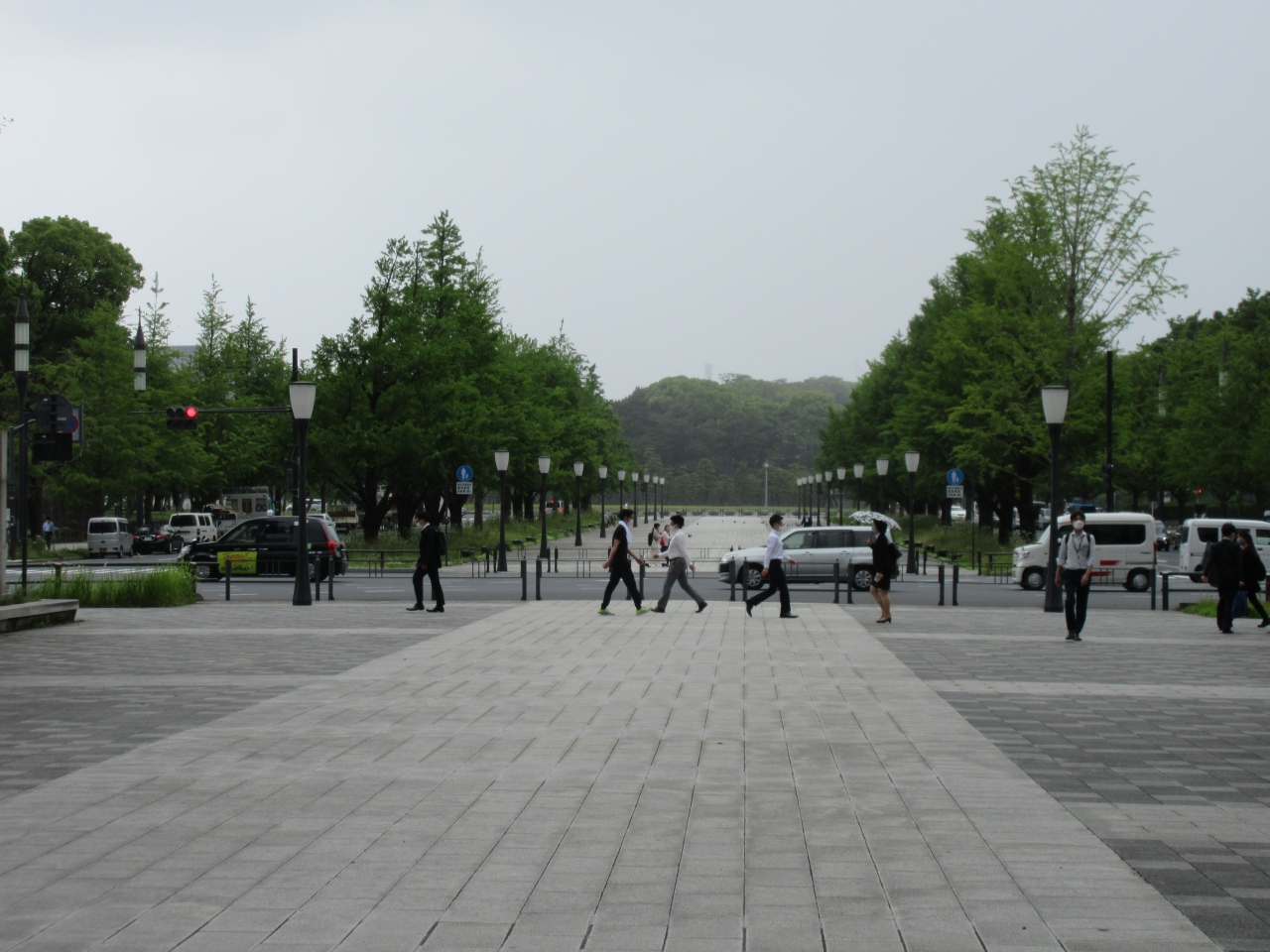 さらにその先に、まるで広場のような遊歩道があります。パレードに使われる行幸通りです。まっすぐに進むと皇居の桔梗門です。
