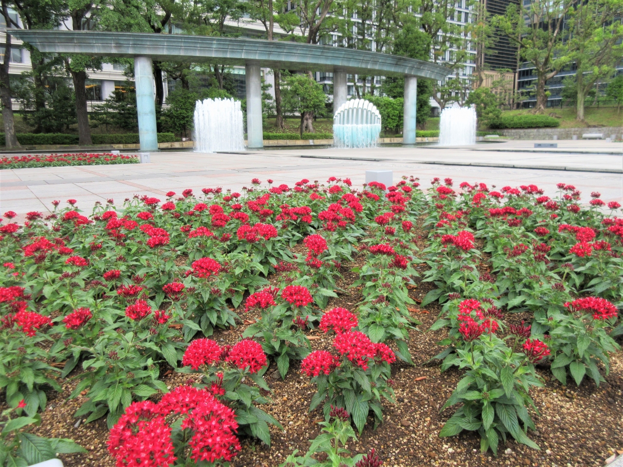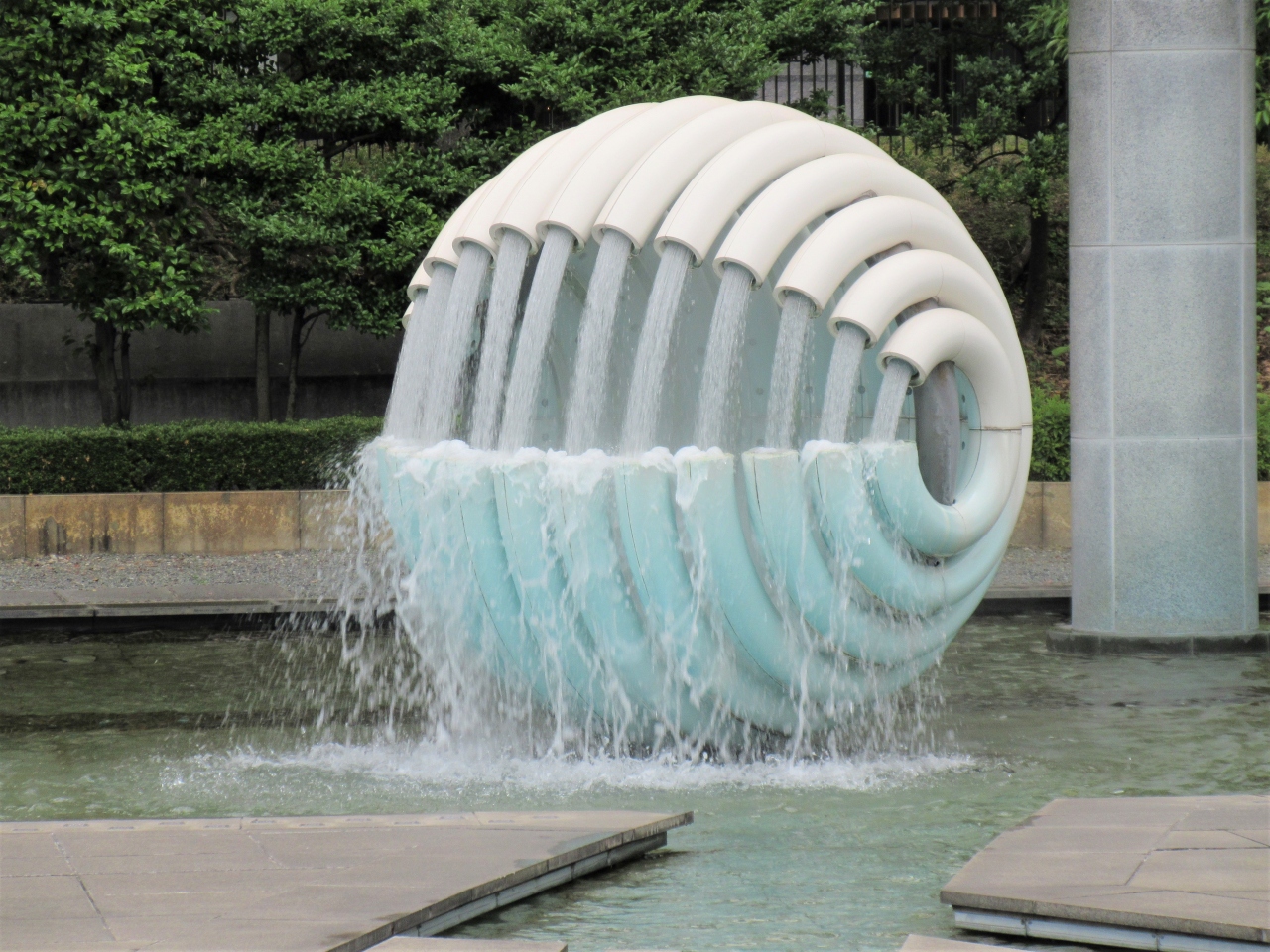3月は工事中でしたが、今回は工事も終って青いビニールシートも取り除かれて、いくつもの噴水は水を出していました。迫力のある大きな噴水や、マカロニがくるくる巻いたような噴水やら、楽しめました。