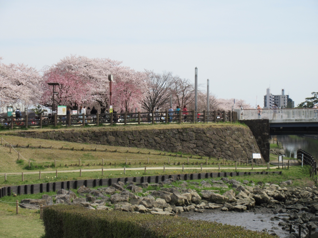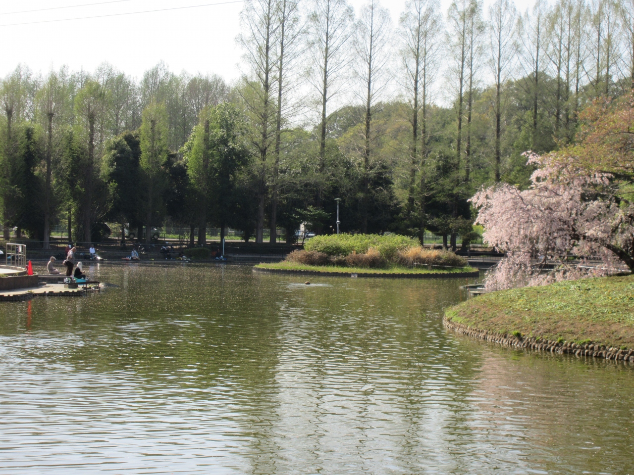 綾瀬川の向こうには、広大な「まつばら綾瀬川公園」があって、芝生広場、遊具、遊歩道があって、多くの家族連れが遊んでいました。川沿いは桜並木になっています。