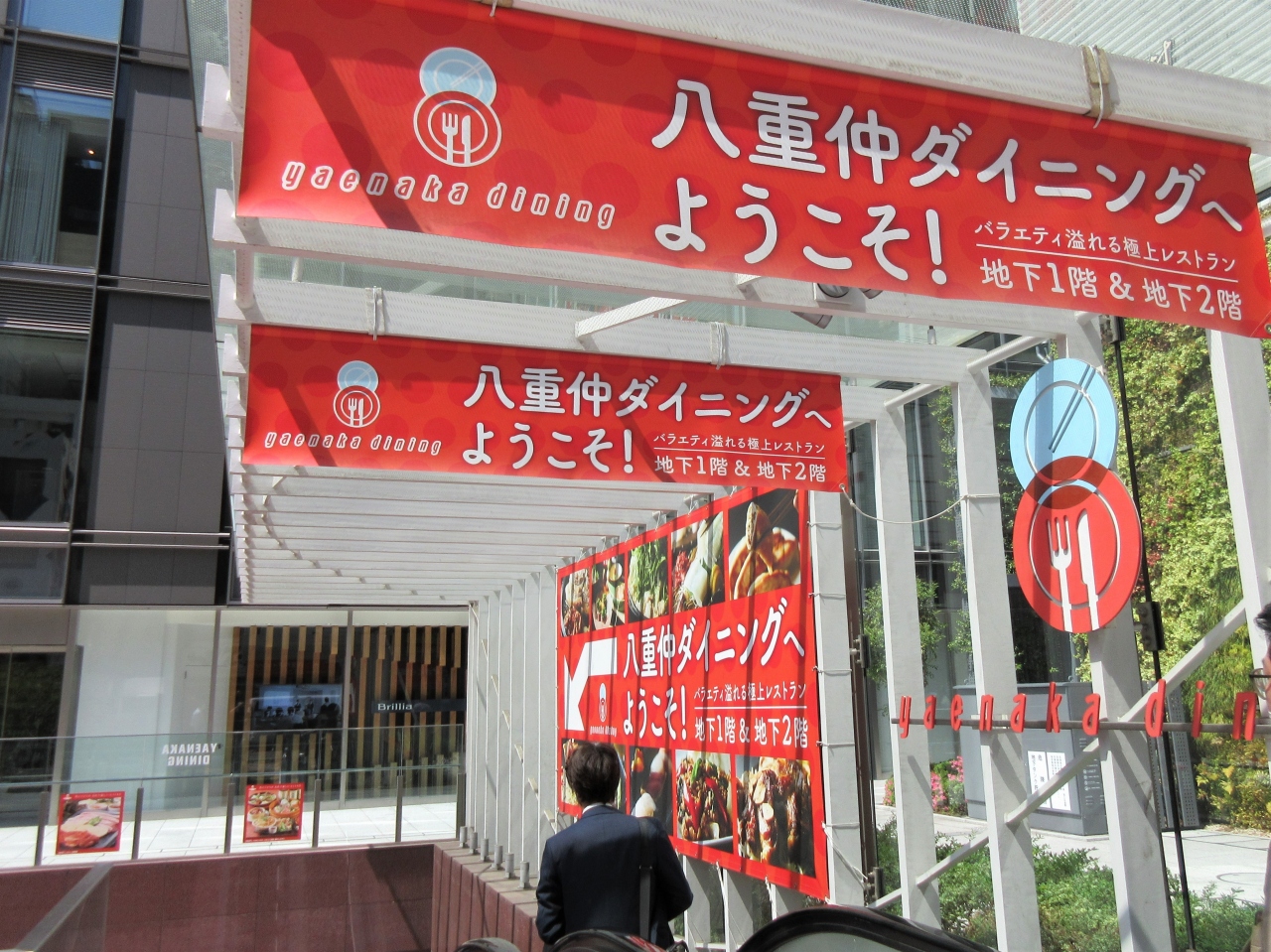 地下1階と地下2階に飲食店がある、八重仲ダイニングというフードコートの地下2階にあります。