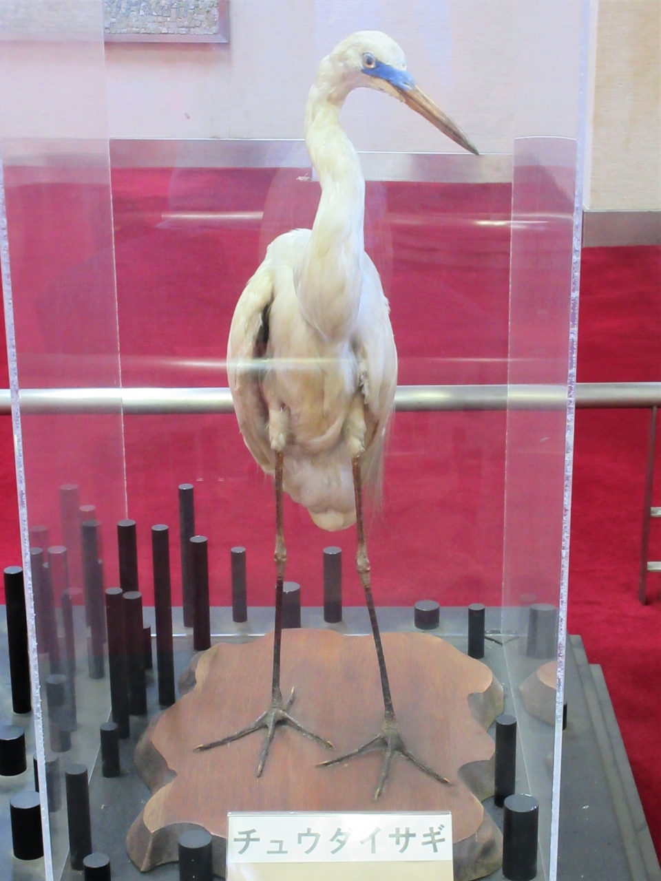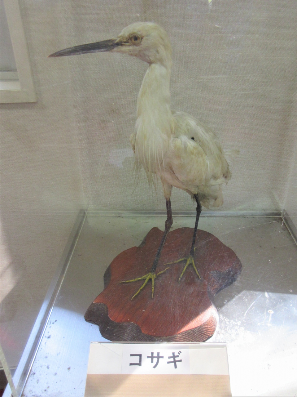 展示室に入って、いろいろな野鳥の写真もありますが、今回の目当てはサギの剥製でした。コサギ、チュウサギ、チュウダイサギ、ゴイサギの剥製が展示されています。