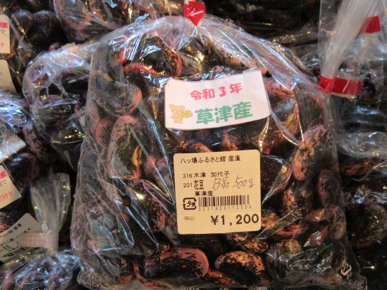 農産物直売所「八ッ場市場」は、新鮮な農産物だけでなく、周辺のお土産も数多くあります。群馬県産の生の花豆も安いので、知人へのお土産に買いました。