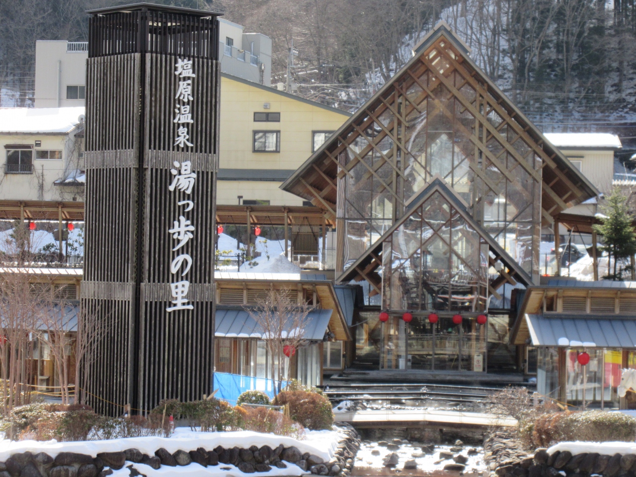 古町温泉街で大きなホテルは「大江戸温泉物語ホテルニュー塩原」と「塩原温泉ホテルおおるり」です。それぞれ裏口から出ると目の前が古町温泉街です。