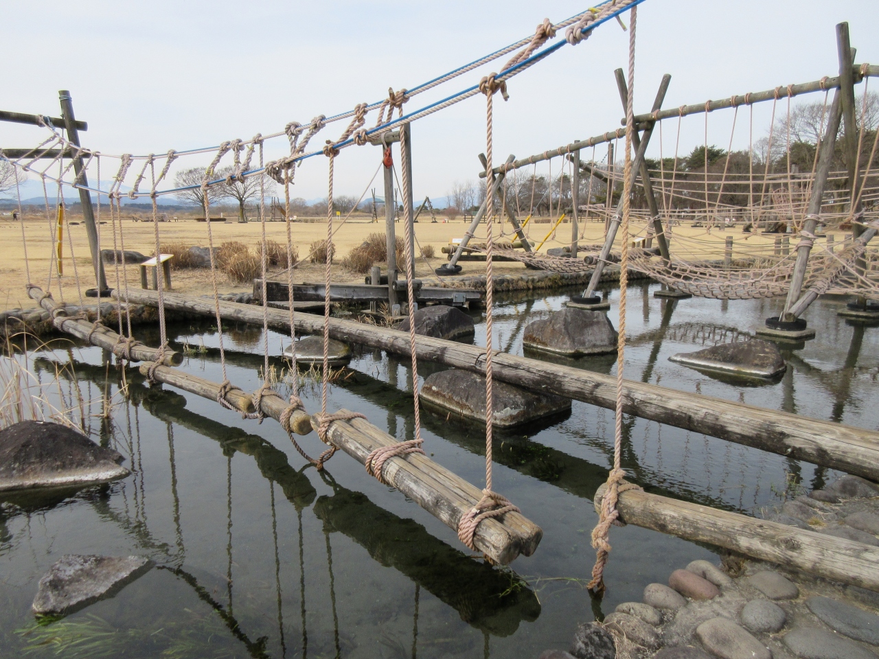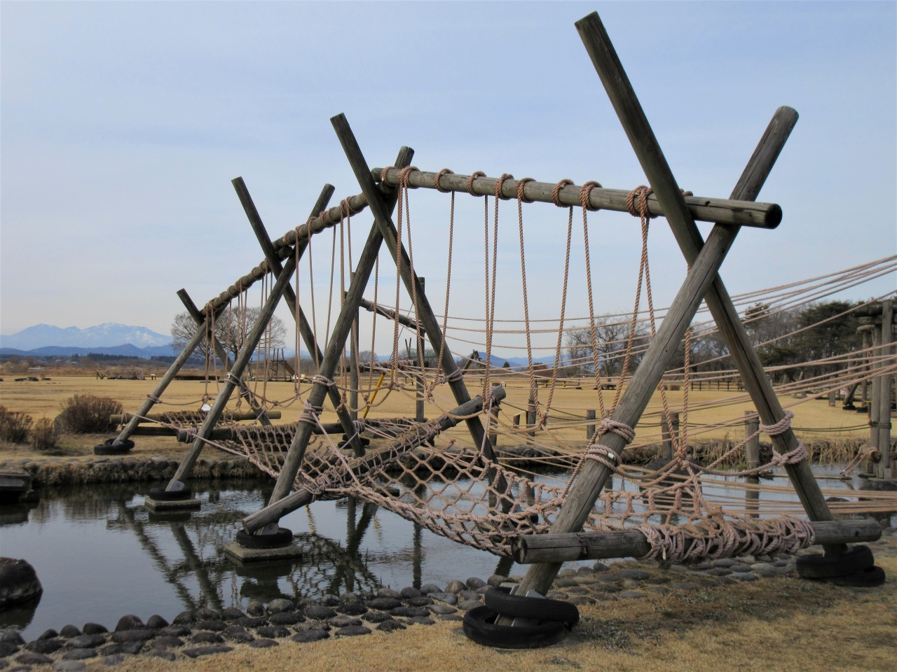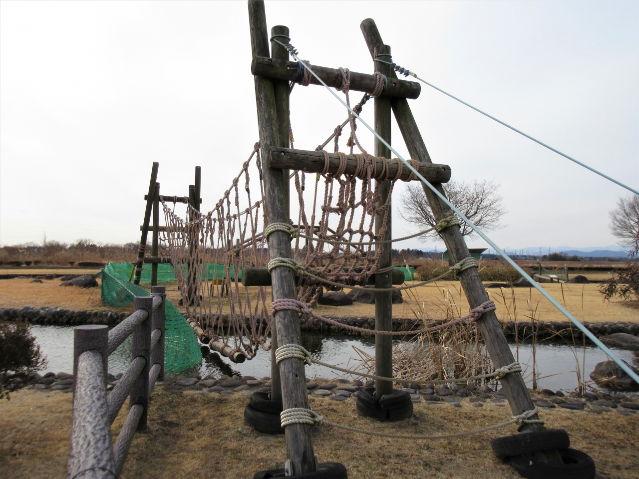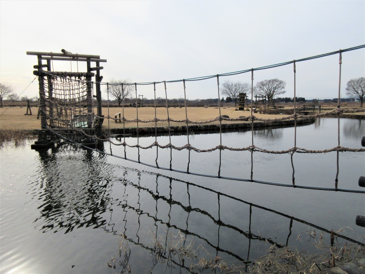 鬼怒川沿いの広大な県営公園「鬼怒グリーンパーク」内にあります。基本的に無料ですが、この水上アスレチックは有料です。でも高校生以上で300円と安いです。