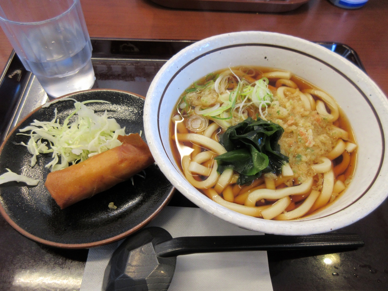 山田うどんの代表的メニューの『たぬきうどん』と『特製春巻き』をいただきました。