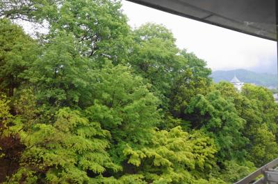 京都駅より50mほども標高が高い、宝ヶ池の近くにあるホテル。気温も2度ほど違う感じです。ホテルは周囲を緑に囲まれていて、部屋からも若葉を眺めることができました。