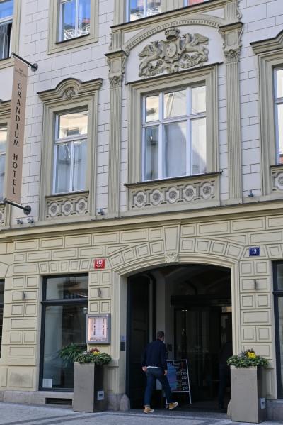 旧市街広場からほぼまっすぐ南に行ったあたりにあるホテル。ミュシャ美術館や国立博物館の近くです。