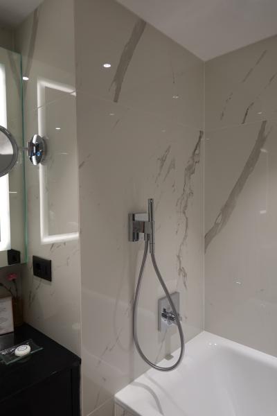 部屋は広々としていて、バスタブとシャワーブースのあるバスルームも清潔感溢れています。アメニティはフェラガモ。気持ちよく滞在できるホテルです。- 旅行時期