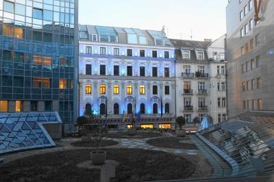 鎖橋にほど近い、エルジェーベト公園に面して建つホテル。裏はファッションストリート、お土産街にも面していて、とにかくロケーションは抜群です。空港からのバス停も近かったので、個人旅行で使うにも便利そうです。