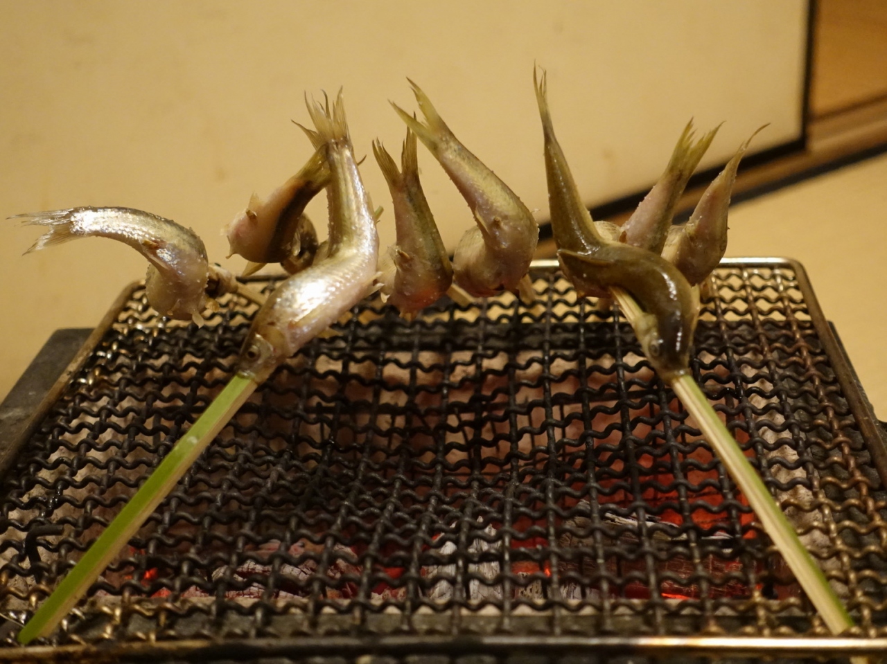 お料理は、美味しいのはもちろん、目にも美しく、季節の風情を味わうことができます。今回は、モロコが絶品。その場でじっくり焼き上げていただきました。