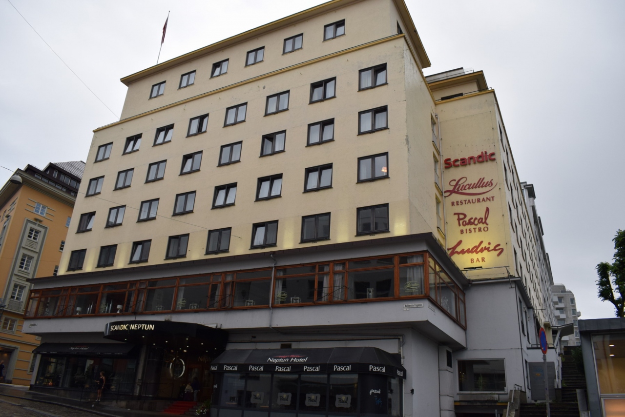 魚市場のとなり、フェリーターミナルからちょっと上ったところにあるホテル。周囲は地元の人のショッピングエリアです。魚市場をはじめ、ベルゲンの旧市街へのアクセスもとてもよく、観光の拠点にぴったり。