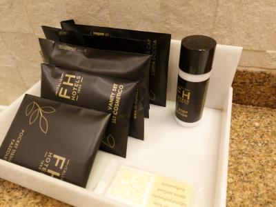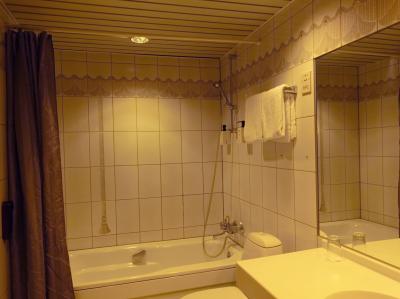 部屋はクラシックなスタイル。バスタブのついた浴室がうれしい。アメニティも充実。粉石鹸もあった。