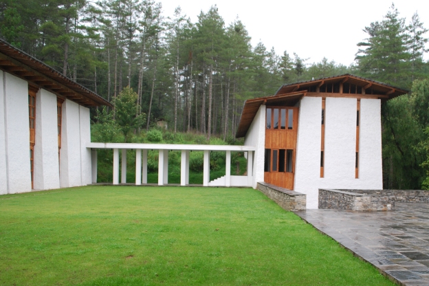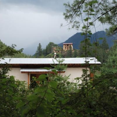 アマンコラ・ティンプーは首都ティンプーの郊外、丘の上にたっています。すぐ裏が森と小川。静寂の中で、木のぬくもりを感じながら過ごすひと時。