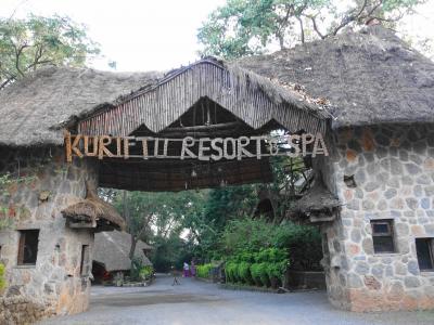 タナ湖の湖畔にたつホテル。石造りのロッジ形式の建物が転々とあります。