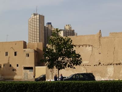 マスマク要塞から、再開発地区をはさんで北側にあるホテル。部屋にもよりますがマスマク要塞側の部屋だと、ライトアップされた要塞やグランドモスクなどの夜景がきれいに見えます。