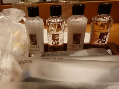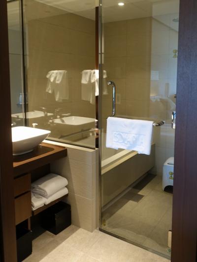 部屋は清潔感があり、アメニティ類も豊富だった。バスタブ付きの部屋でうれしかったが、湯量が少なかったのが残念。朝のビュッフェなど食事もおいしい。特におすすめは冷たいメゼ。