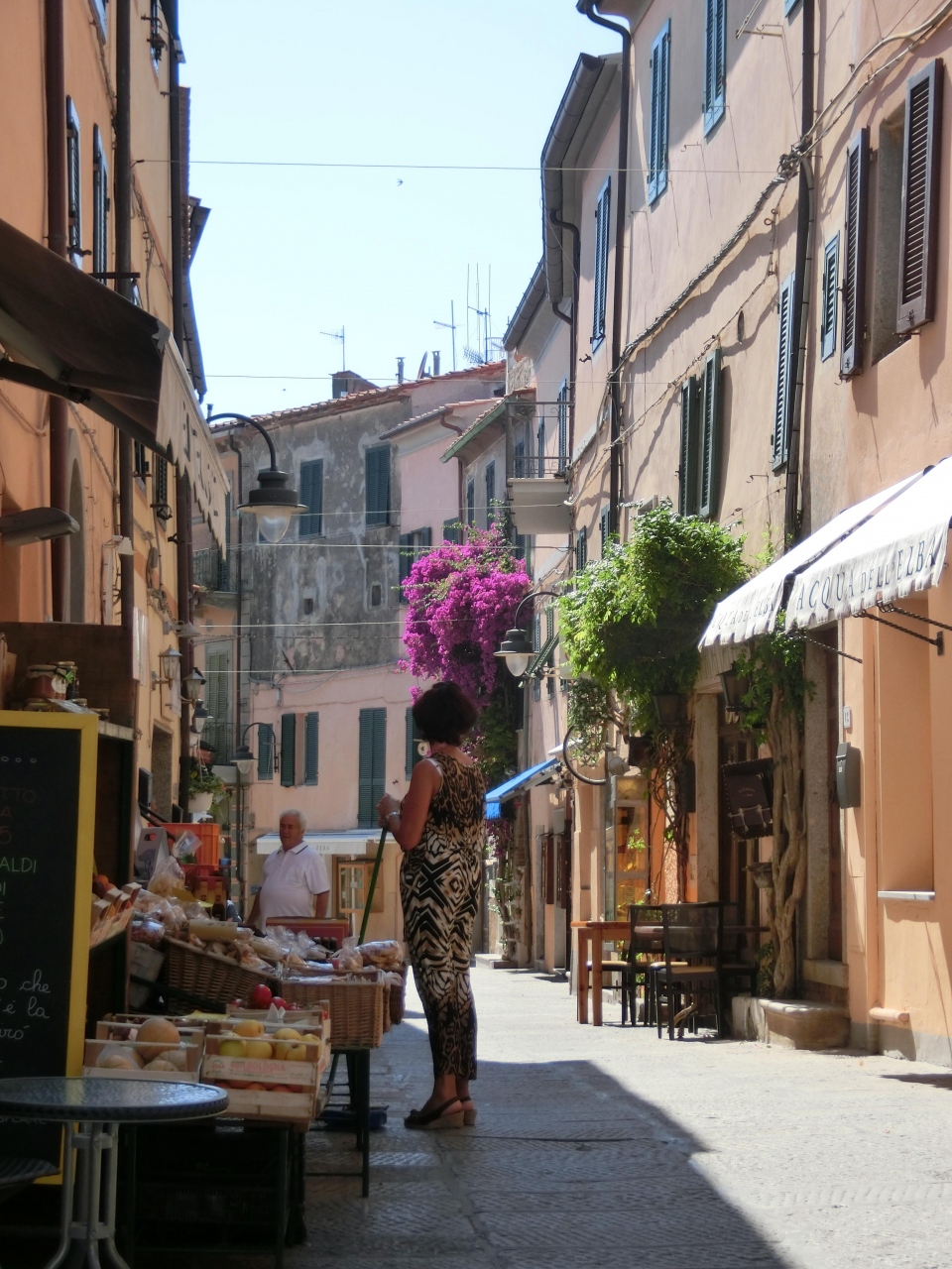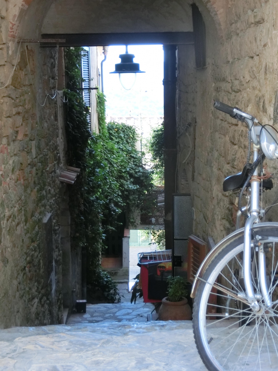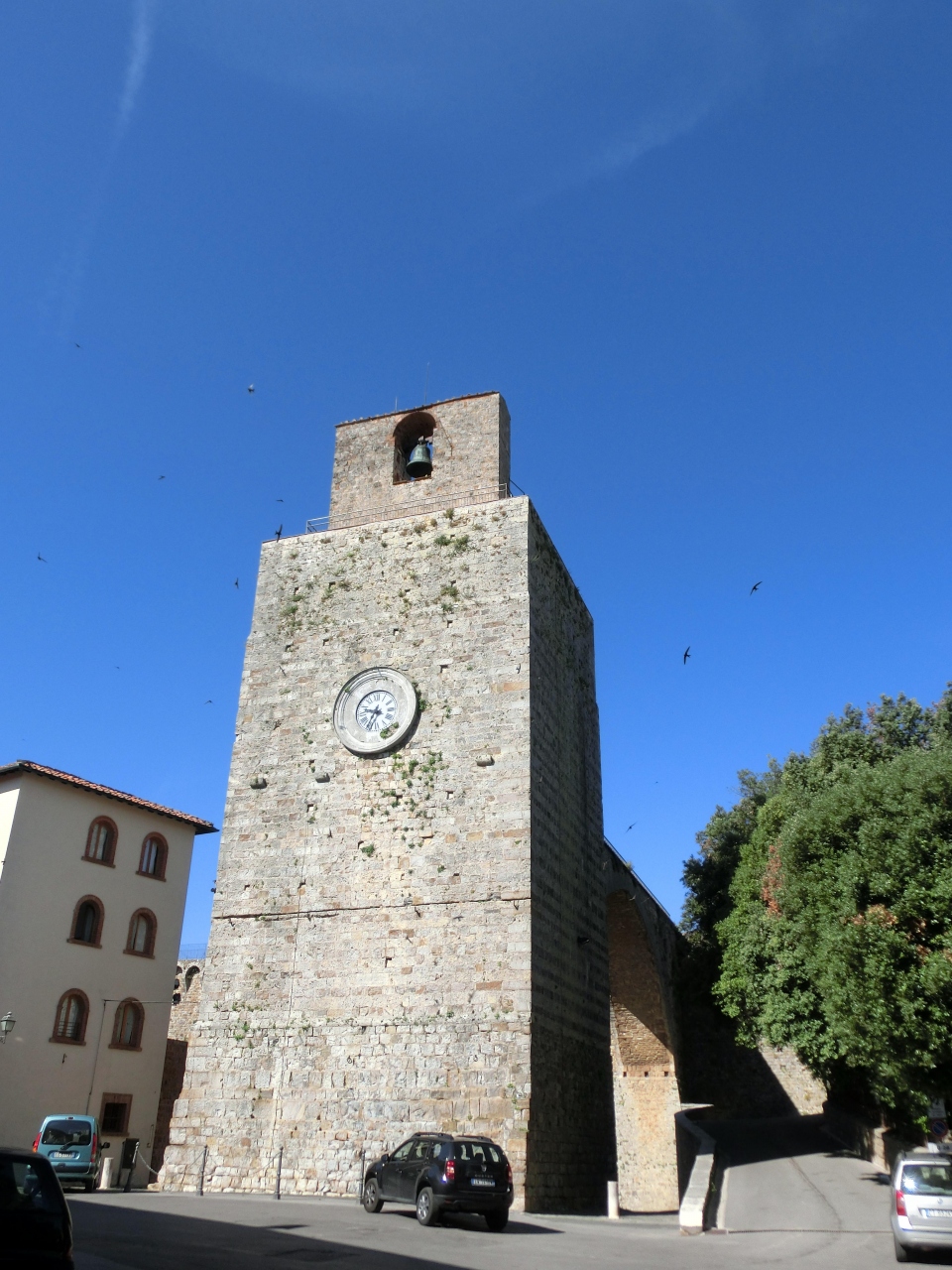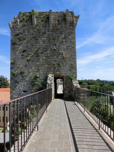マッサ・マリッティマの中心の広場(ガリヴァルディ広場)からモンチーニ通りを登っていくと高台にあります。塔の中の急な階段を登ると外に出て橋上部分を歩くことができます。眼下に街全体が、遠くにティレニア海やエルバ島が望めます。