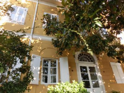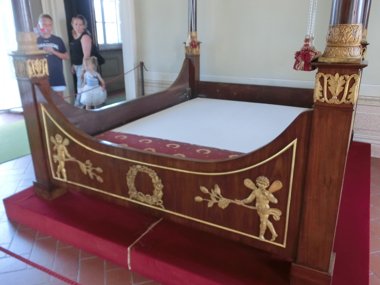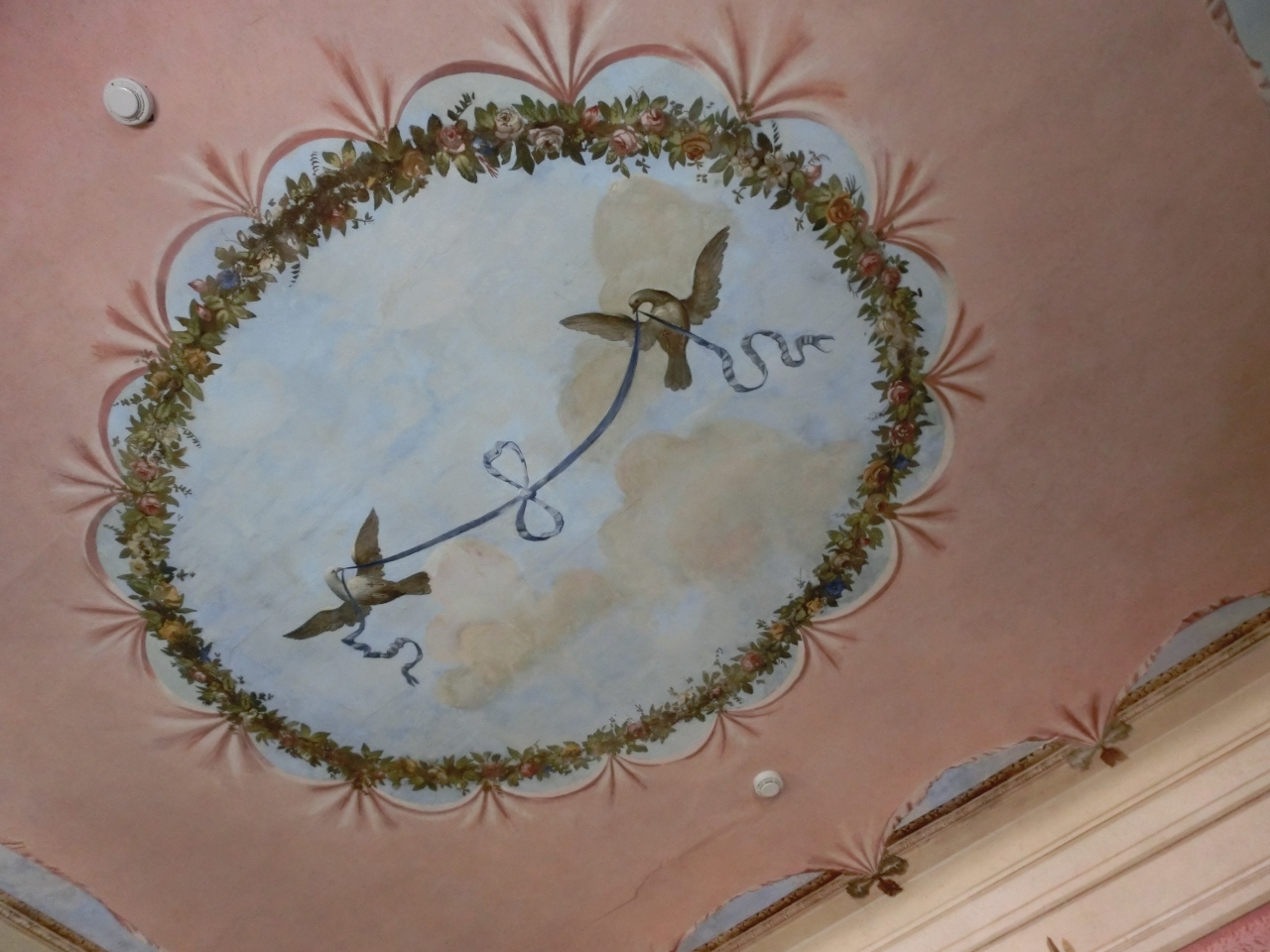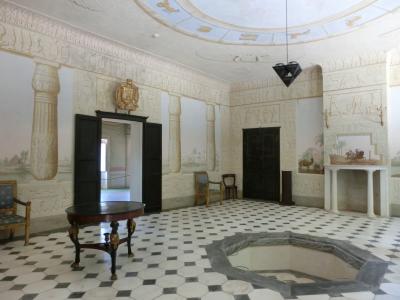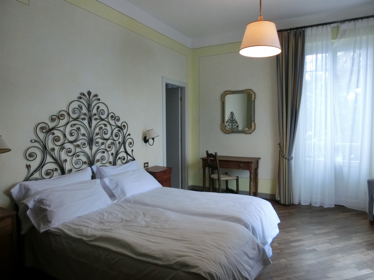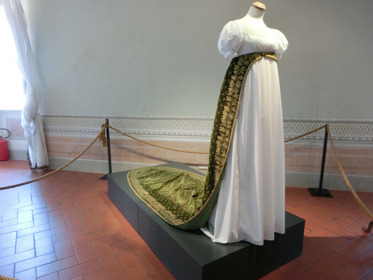 ポルトファライオのバスターミナルから15分(夏季1時間に1本)で着きます。参道のような道をすすむと博物館があり、左手に行くと切符売場があり、さらに登ると別荘があります。淡いピンク色の部屋など小ぶりながらも美しいしつらえです。