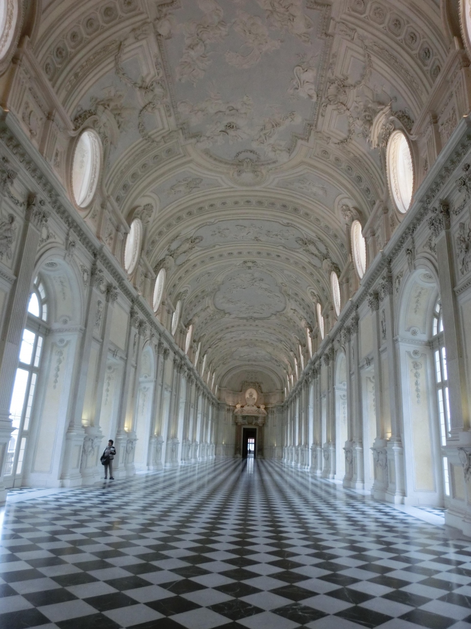 サヴォイア家の人々にこよなく愛された城。ヴィットーリオ・アメーディオ2世の命でユヴァッラがフランスのヴェルサイユ宮殿を模して1718年改修、増築(13C造られた)したといわれる。美しい広間に惹かれ、訪れました。トリノの中心部からバスで30分くらいだったと思います。庭も広大です。