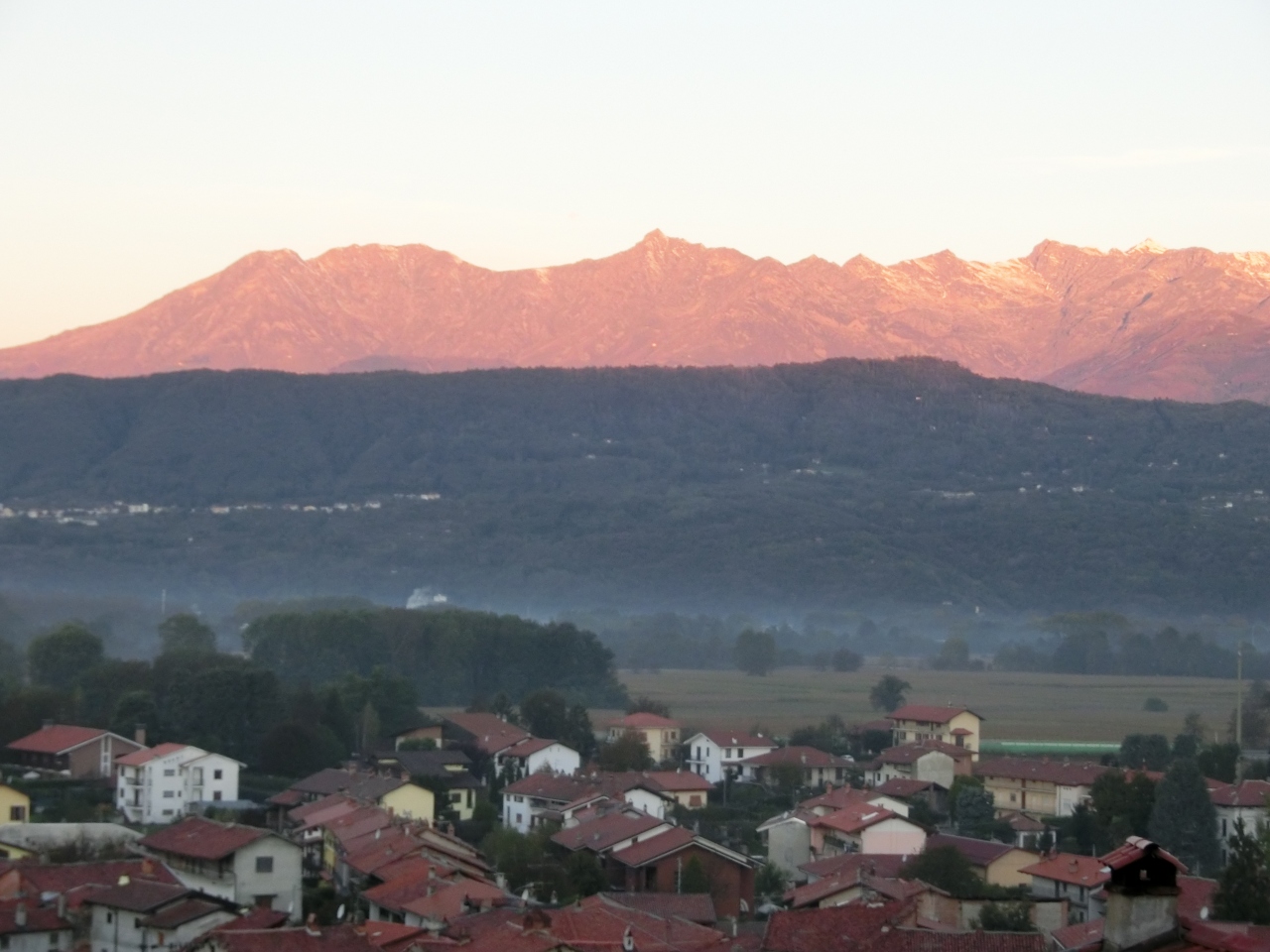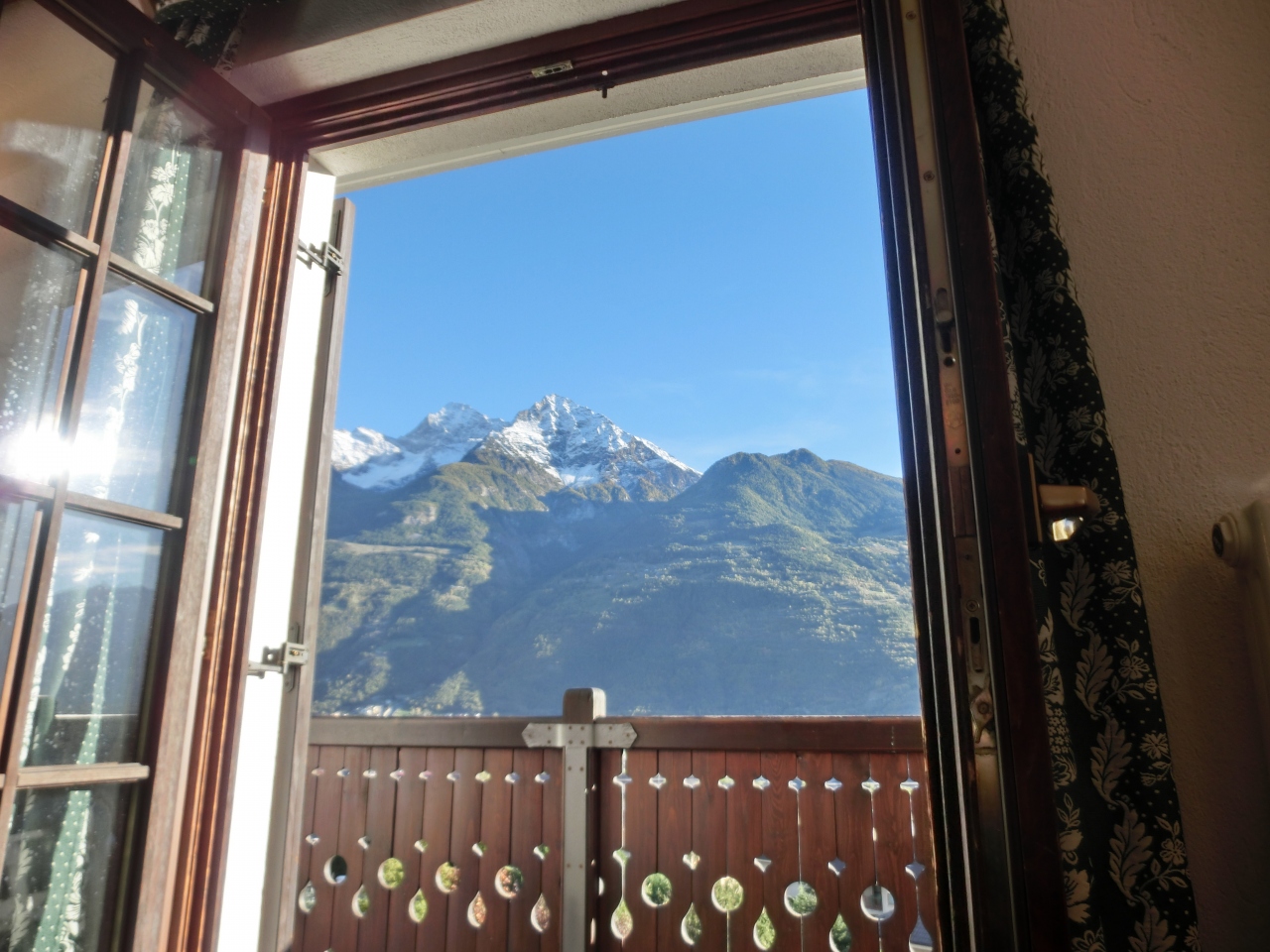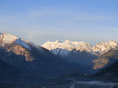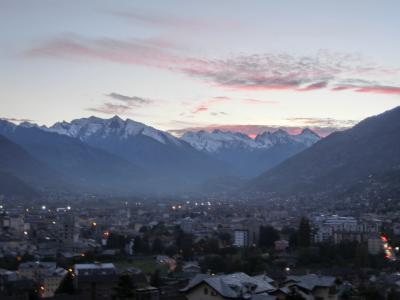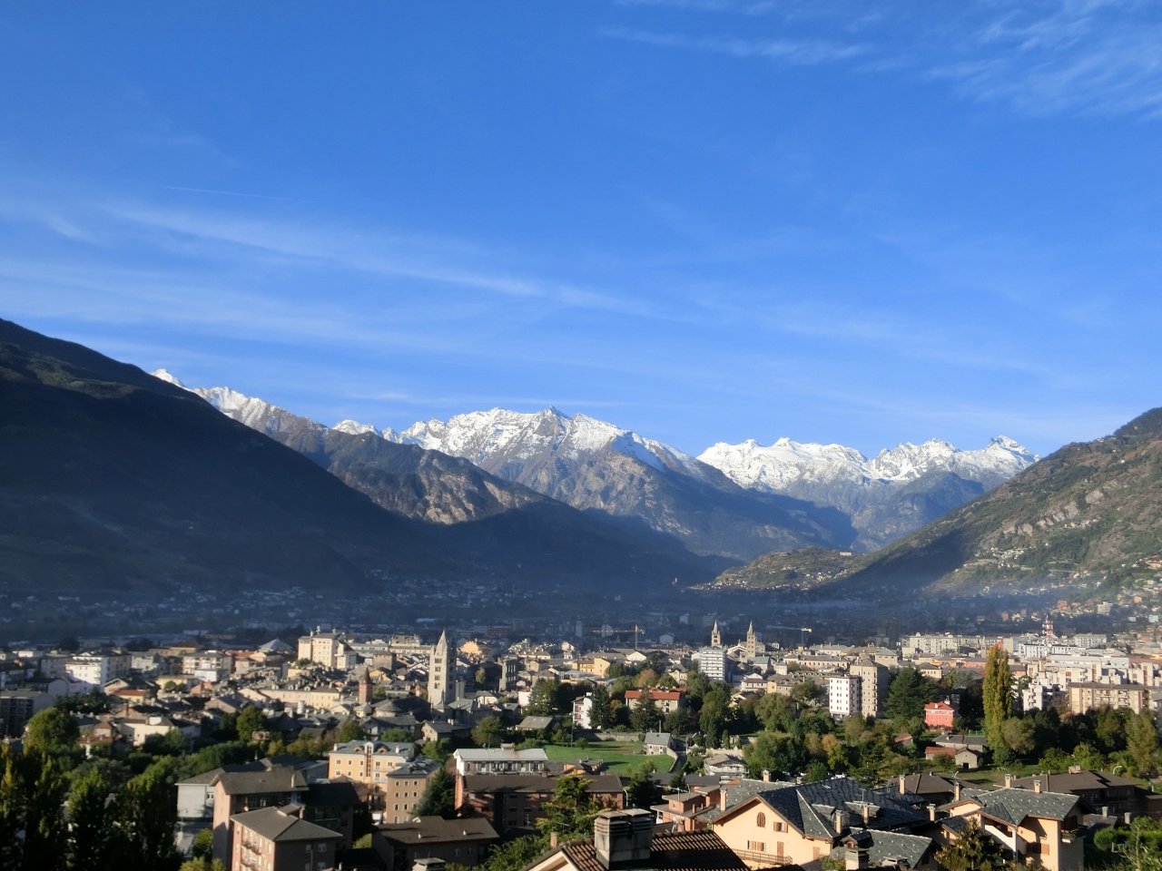 アオスタ州の観光誌に載っていたそのロビーからの景色の素晴らしさに惹かれて宿泊しました。モンテローザなどの山々と眼下に広がるアオスタの街がとてもきれいでした。