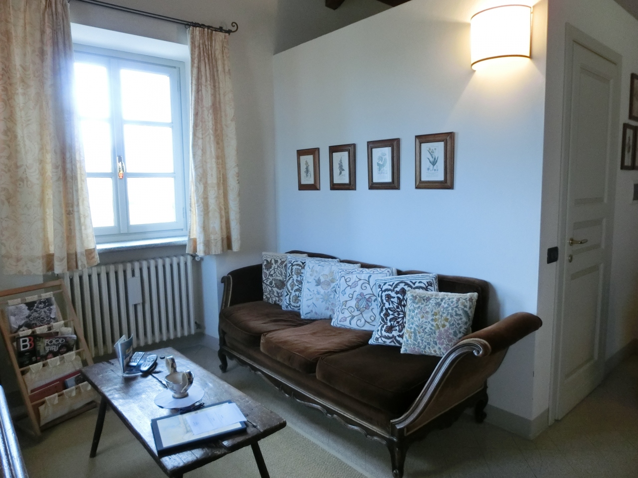 街の高台なので窓からランゲの丘や隣のカヴァッサの館(中世の貴族の館)も臨めます。