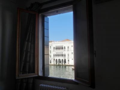 美しき館カ・ドーロが部屋を窓から見ることができます。朝食は、小さなバルコニーからもいただけます。