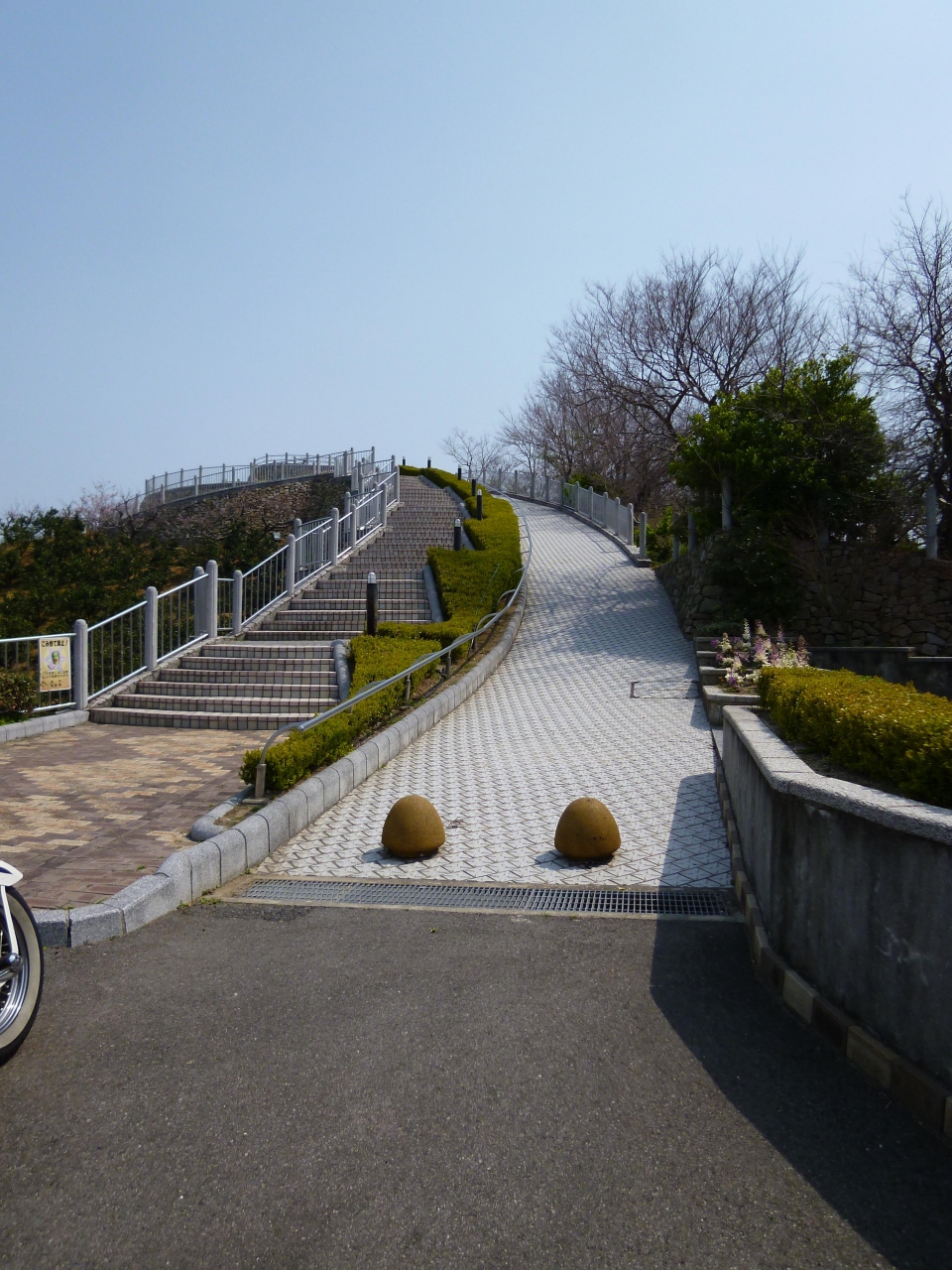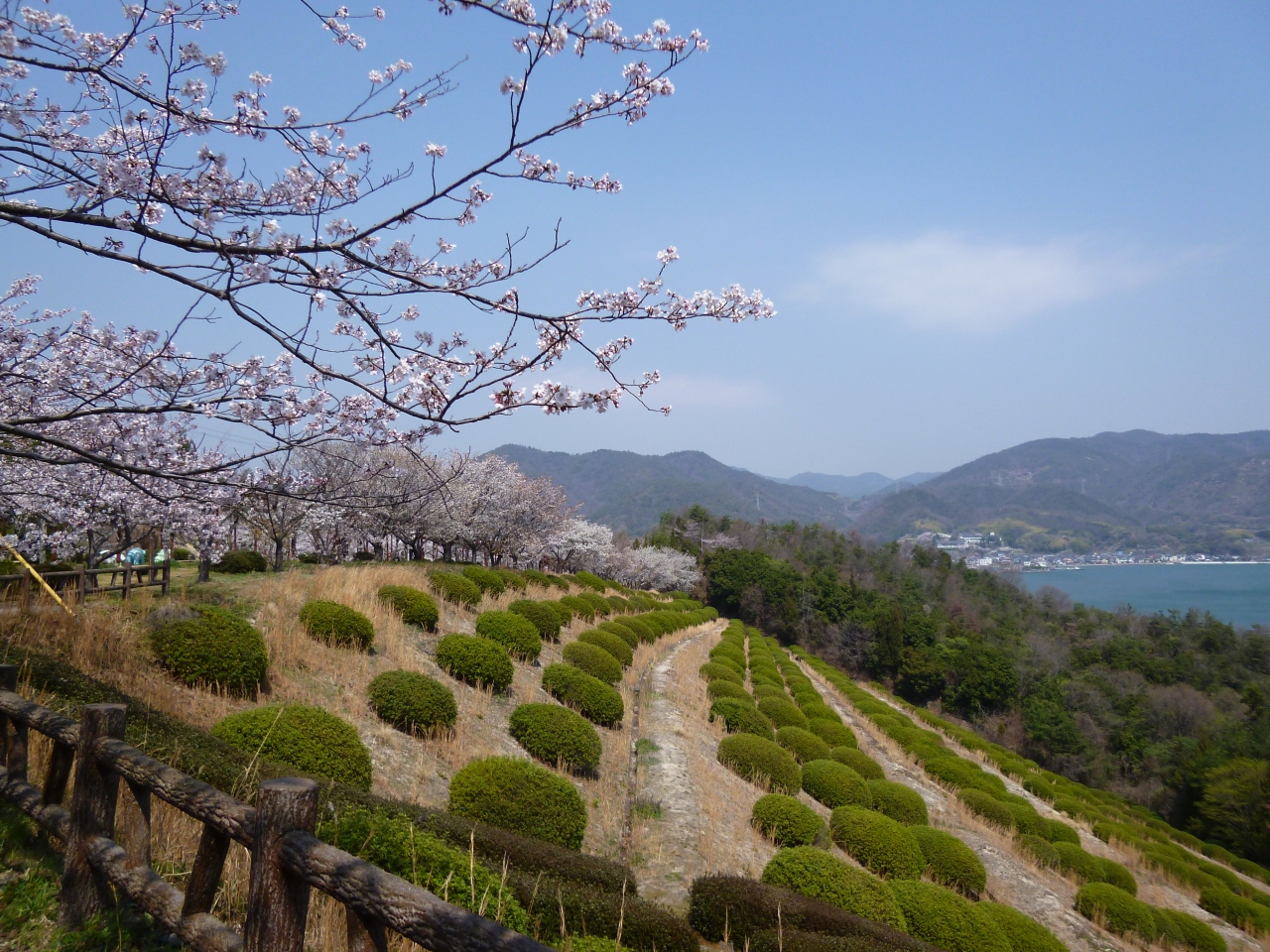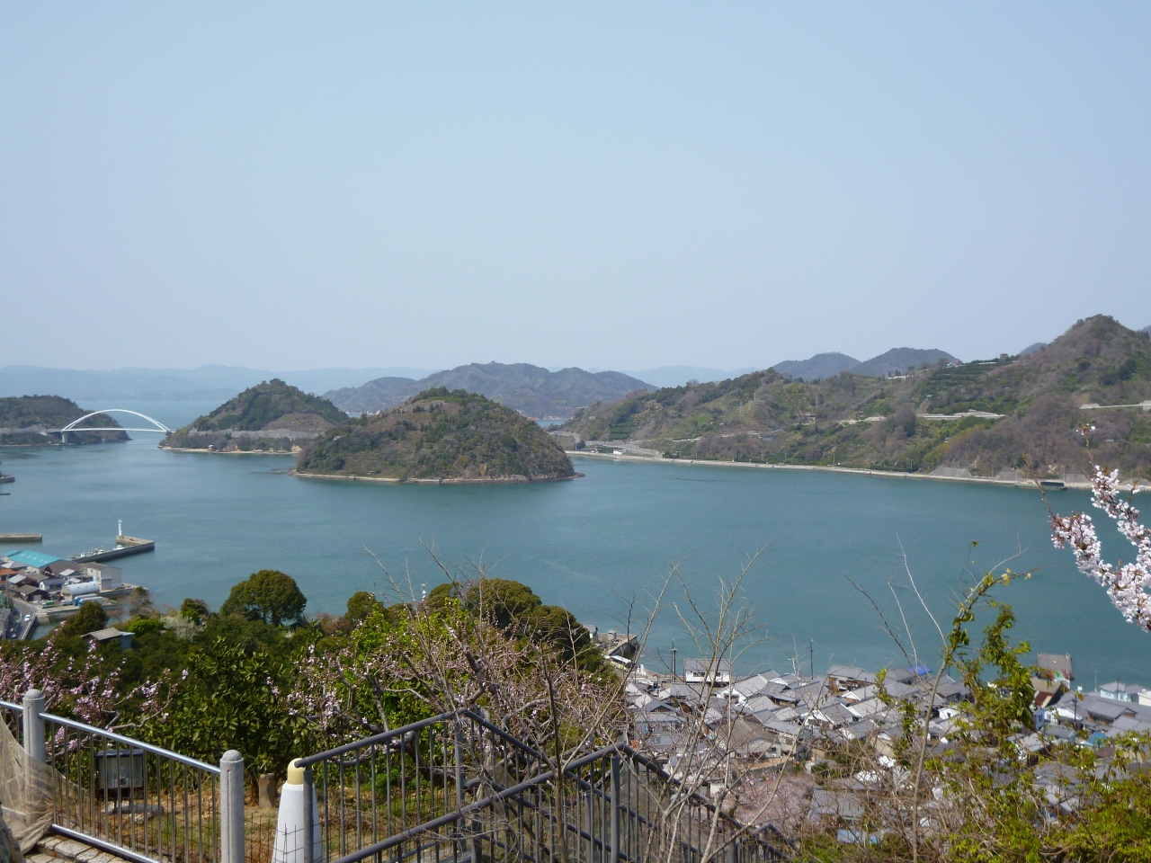 駐車場やトイレがあり、展望台からは御手洗の町並みが一望出来ます。又岡村大橋や岡村島、中ノ島、平羅島などの島々も見え、桜の花越しに見える景色は最高です。江戸時代はたくさんの船が行き来していたのでしょうね。