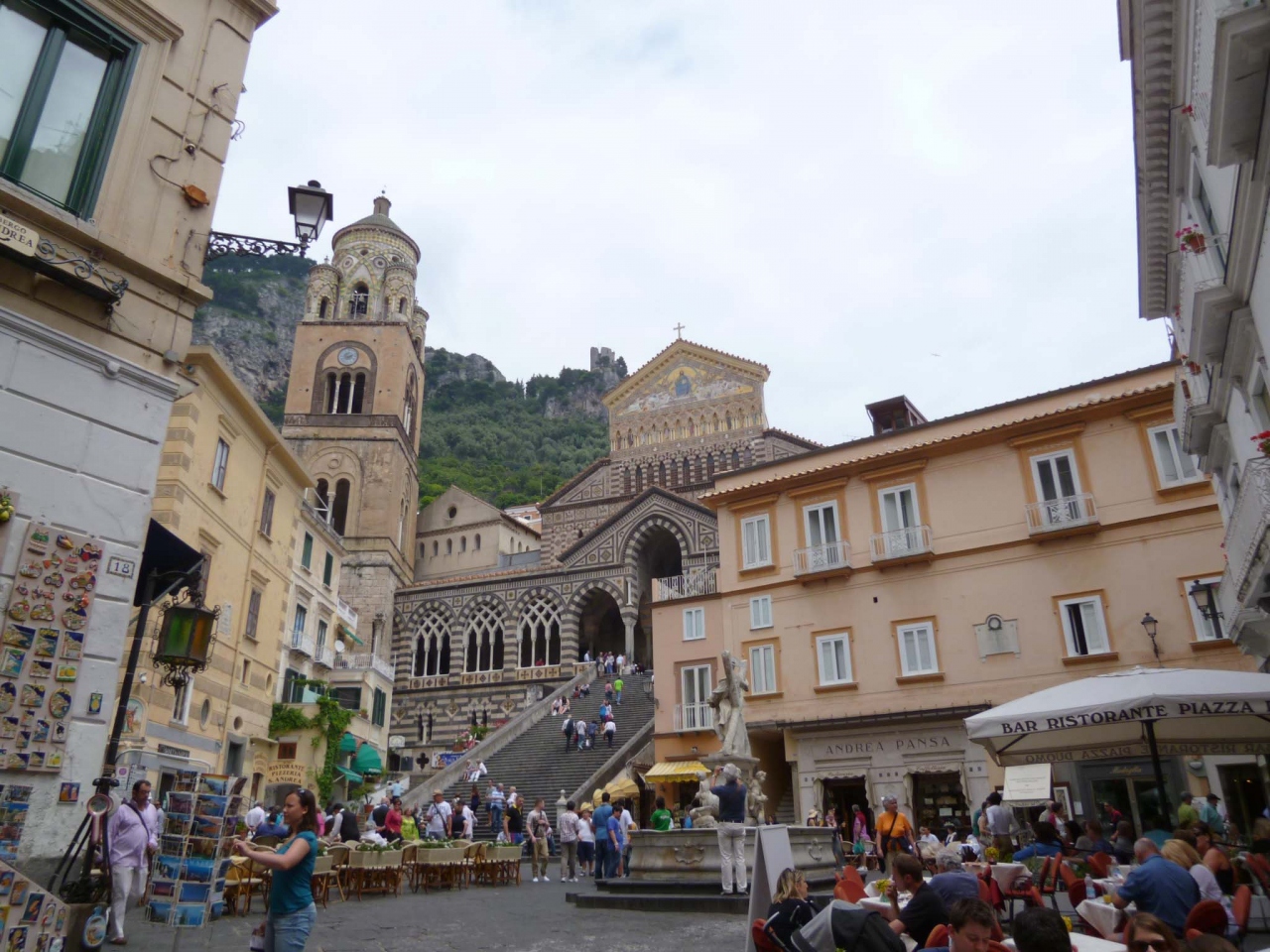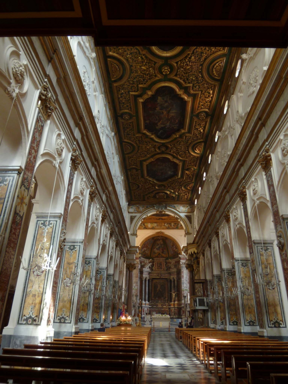 階段の上にある東方文化の香り漂う金色のファサードのドゥオーモが印象的ですが、中もおもしろかったです。尖塔型のアーチが並ぶ天使の回廊や、聖アンドレアの頭と骨が保存されているというバロック様式の地下聖堂、格天井の美しいドゥオーモと見所満載でした。