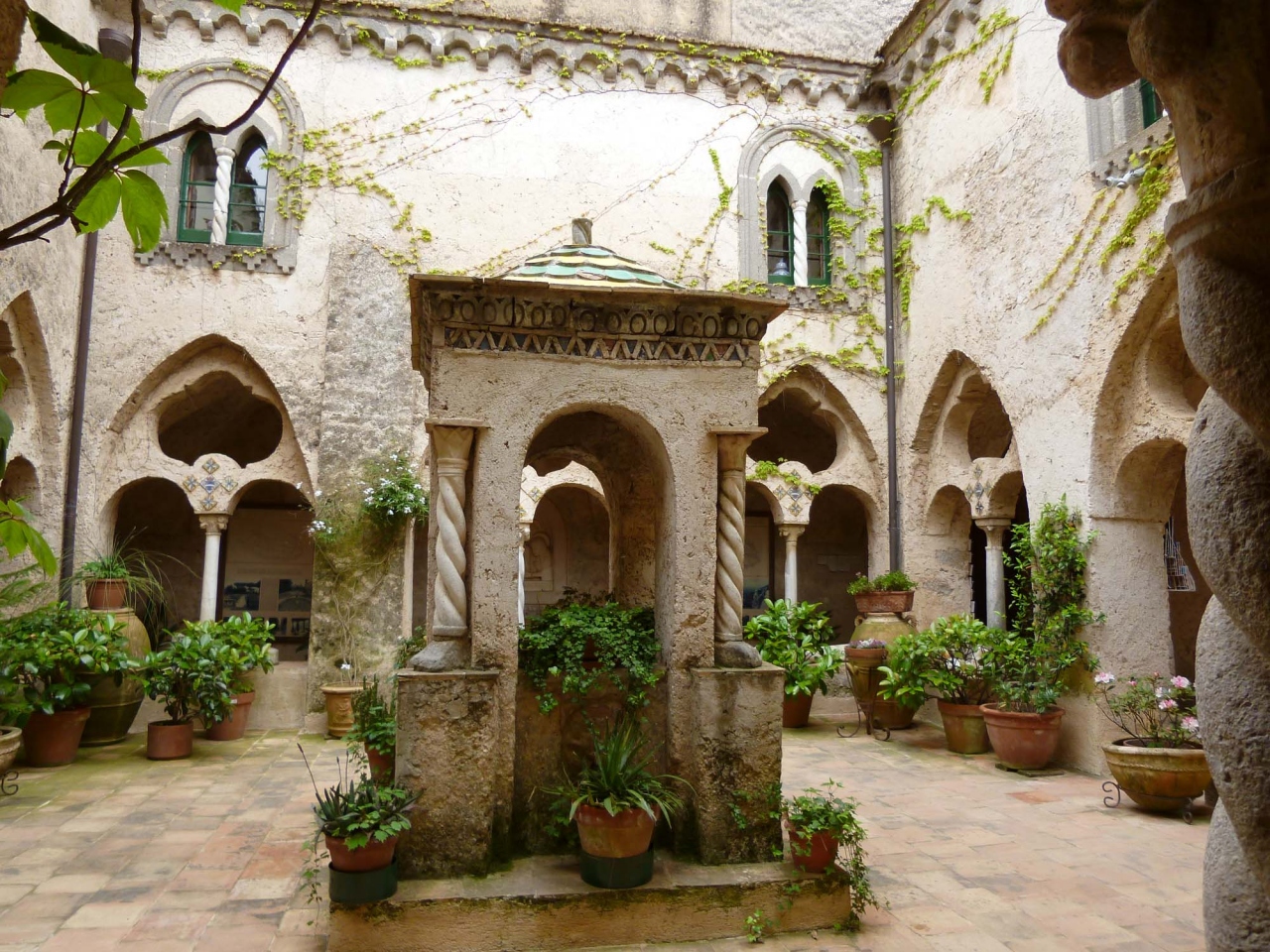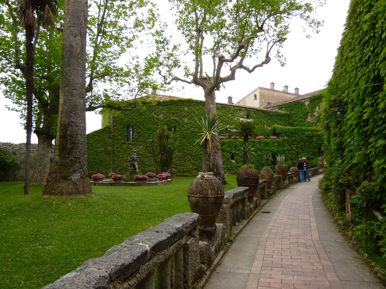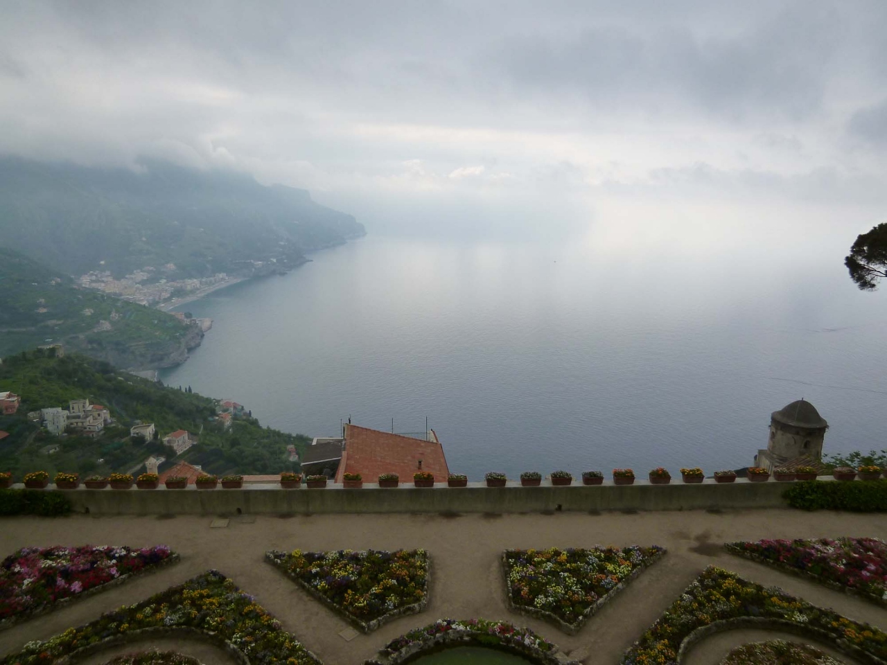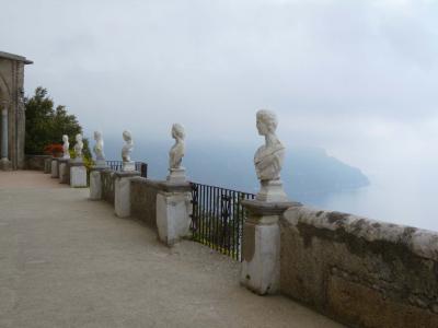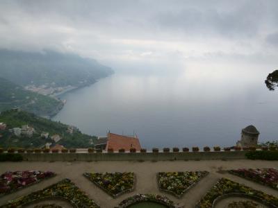 くねくね曲がった道を登っていくとラベッロに到着します。小さい街ですが、入ってすぐに広場があり、ヴィッラ・ルーフォロとドゥオーモがあります。ヴィッラ・ルーフォロはワーグナー音楽祭が開かれるところで、庭園にその舞台を設えるそうです。庭園からの眺めが素晴らしく、音楽と共に味わえたらさそやいいことでしょう。ドゥオーモの説教壇のモザイクもかわいく、「ドラゴンに飲み込まれる人のモザイク」もかわいい。ヴィッラ・チンブローネは結構離れたところにありますが、ここは本当に庭園からの眺めが最高でした。