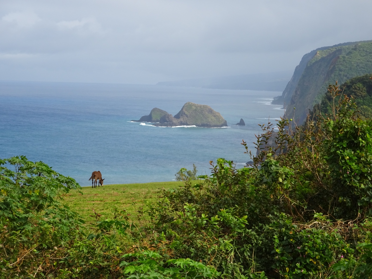 北東の方角にあり、切り立った崖と青い海がきれいな渓谷です。キラウエアとは全く景色の異なる緑豊かな景色。断崖絶壁で囲まれたワイピオ渓谷。一見、人の気配を感じない谷底ですが、現在50人程のタロイモ農家や漁師さんが暮らしているそうです。ワイピオは王族ゆかりの地であり、昔から神聖な場所だそうです。今の様相からは想像がつかないのですが、かつては王族が住む政治の中心地だったようです。険しい崖には洞穴があり、そこには多くの王達が埋葬されているそうです。又谷底に行くと生い茂る草と清らかな水が流れているとか。