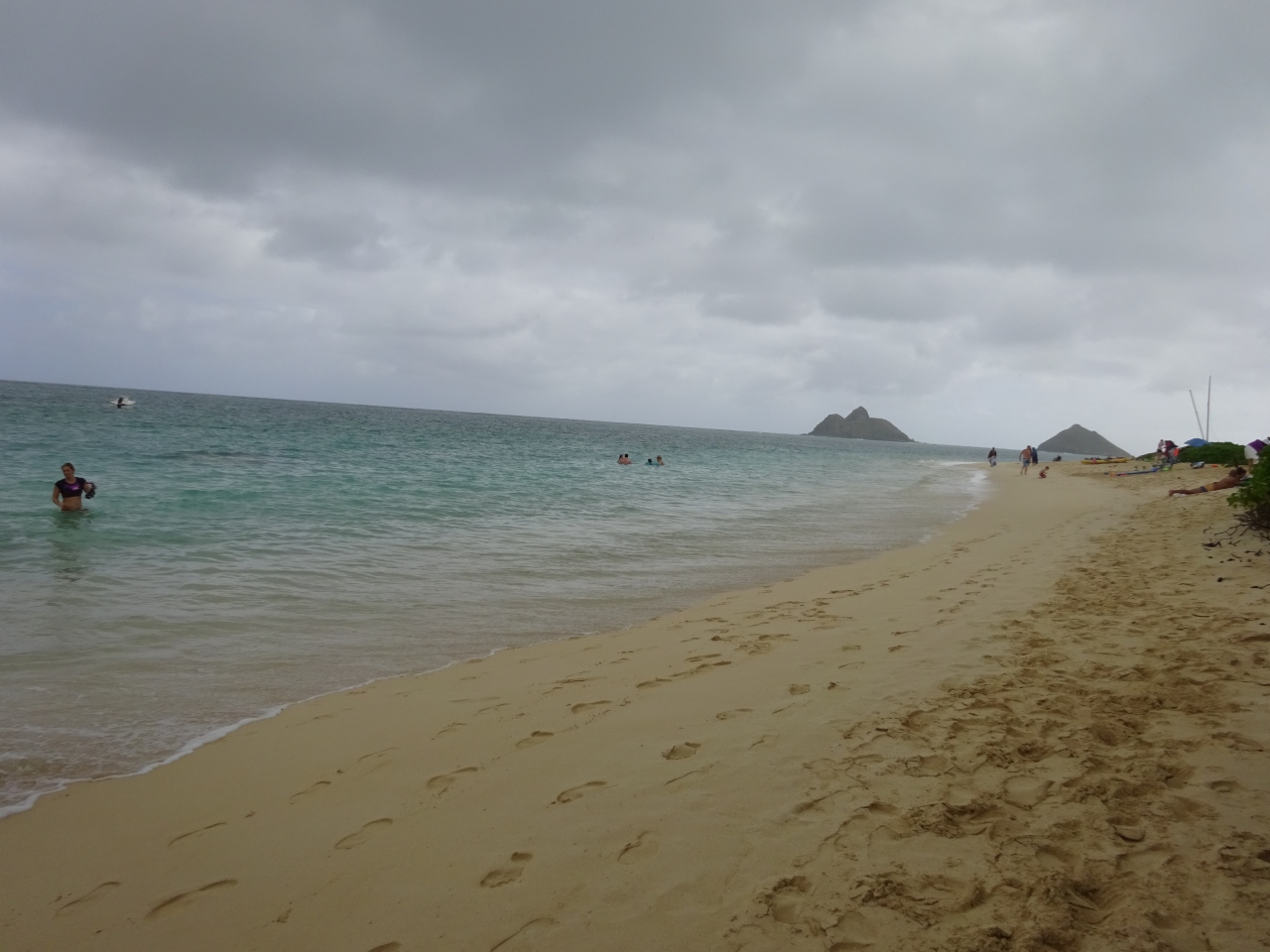 レンタカーで行きました。人も少ないし海は澄んで青く、白い砂浜が続いています。トイレもありますし、監視員もいますので安心です。ワイキキより抜群にきれいです。ここから歩いてラニカイビーチへ行ってみましたが途中から見るカイルアビーチもいい景色です。