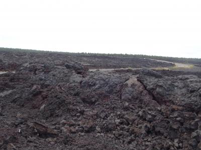 サーストンラバチューブを過ぎるとカルデラから海岸線まで一気に下る30kmの走りやすい道路。道に沿って大小いくつものクレーターを見ることができます。景色はとにかく最高!見渡す限りの真っ黒の溶岩大地、ホーレイパリ、海岸線など、とにかく圧巻という言葉がピッタリ。道は大きくカーブし海岸線へと一気に下ります。下った先から振り返って山側を見ると、絶壁から流れる溶岩が一気にこちらに迫ってくるような迫力のある景色が広がります。小さな駐車場がありそこから歩いて海岸線まで行くとホレイシーアーチという波の力で溶岩を侵食して創られた自然のアーチを見ることが出来ます。荒々しい溶岩の海岸線も素晴らしいです。