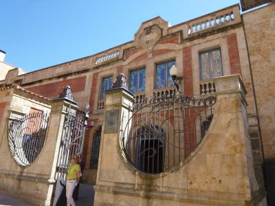 ソブレジャーノス宮殿はコミージャス侯爵がキューバで船会社経営で成功して建てた宮殿で、ネオゴシックの重厚な建物。宮殿の横には礼拝堂、その横に建っているのがガウディ作のエル・カプリイチョ(気まぐれ亭)。ガウディの初期の作品で、侯爵が初のパトロンだったそうです。初期だけあって、ひまわりのタイルが貼り付けてあり、アイアンの手摺もガウディー風。尖塔もおもちゃっぽい。これぞガウディーという感じです。あまり好きじゃないけど、そう変ということ