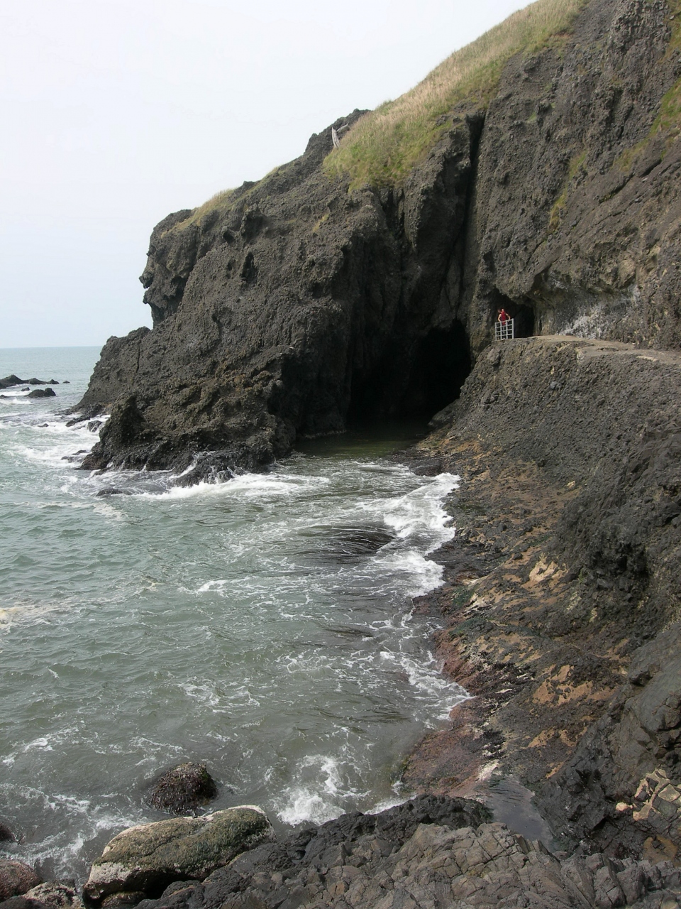 七浦シーサイドラインをドライブするとあちこちに奇岩が現れ日本海の波に洗われているのが観えます。角田岬には洞窟があり、歩いて観に行くことが出来ます。「判官の舟かくし」と言うところで、源義経が平泉に逃げる途中、この洞窟に隠れたと言われているそうです。
