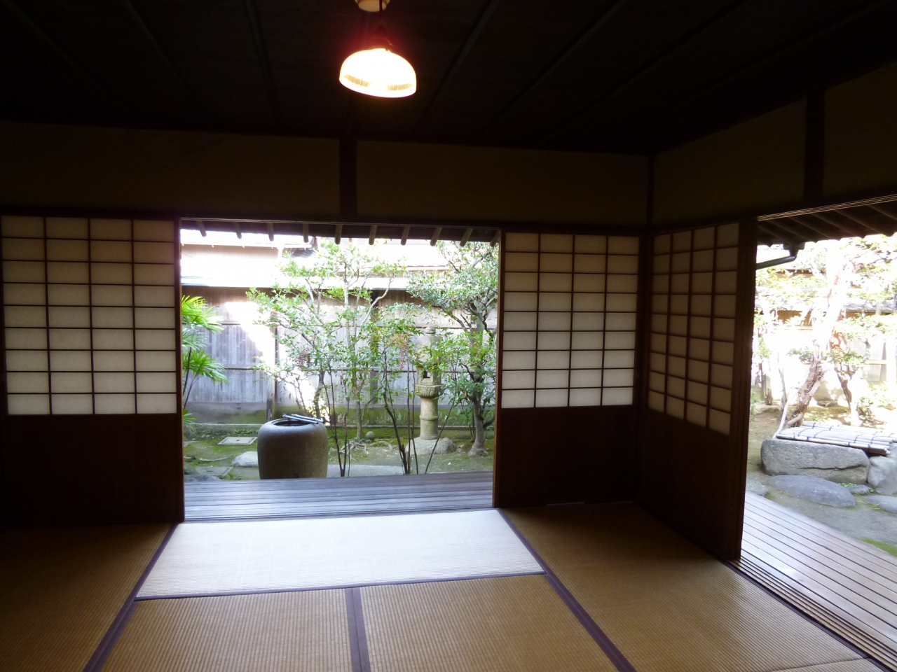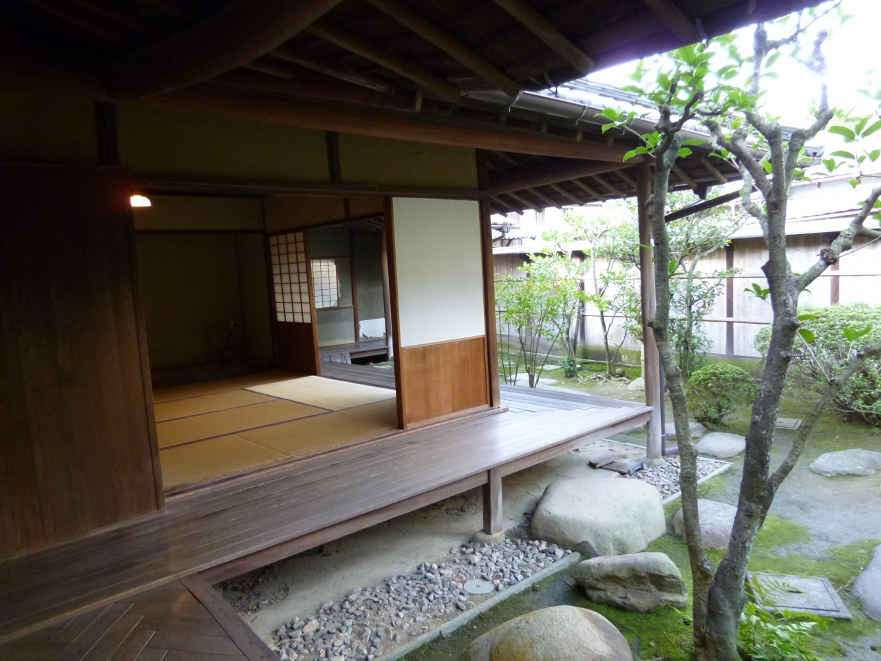 波打つような大屋根がステキなこのお屋敷は江戸末期に建てられたものを、明治に改造して現在に至っているそうですが、座敷は数奇屋風で、そこから見える庭も小さいながらきれいでした。入場料は200円ですが、JAFカードを持っていると、少し安くなりましたよ。