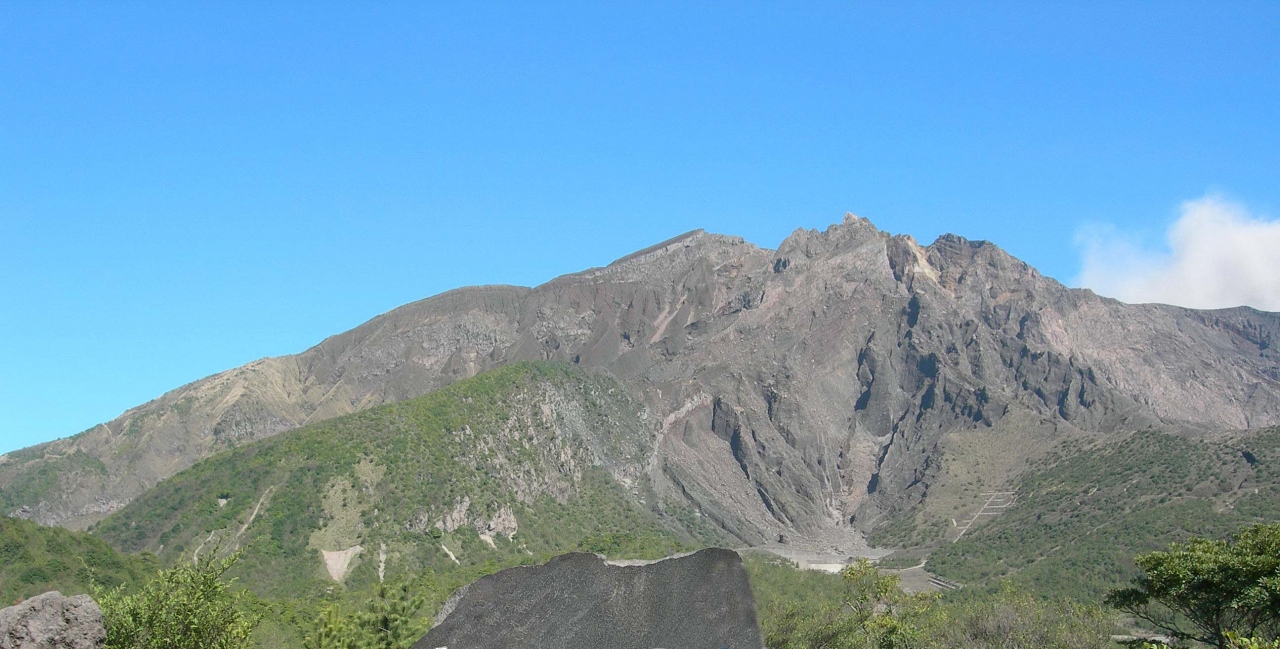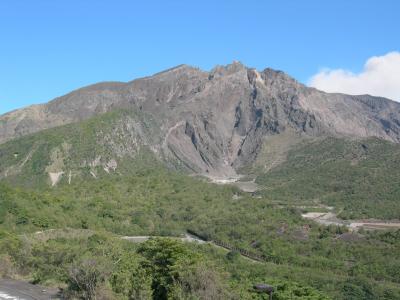 桜島岳の四合目にあり、眼の前に北岳、中岳、南岳を仰ぎ見ることができ、眼下には溶岩原が広がっていて、景色がいいところです。眼を遠くにやれば鹿児島市も見え、鹿児島湾を走るフェリーも見えます。晴れていたので、気持ちがよかったです。