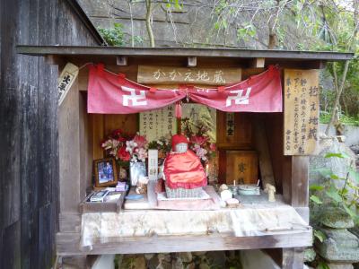 本町通りから路地を入って坂道を登って行くと、おかかえ地蔵さんが待っていました。結構重そうな、ころんとしたお地蔵さんです。早速だっこして、呪文を唱え願い事をしました。重いと感じると願い事が叶わないそうなので、軽いと思うことにしました。叶うといいなあ。