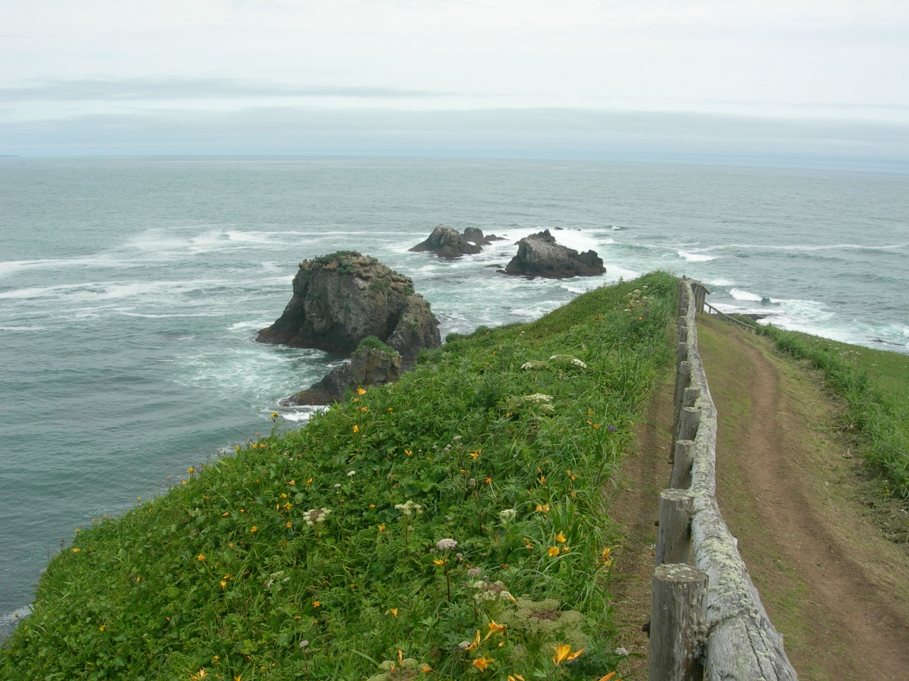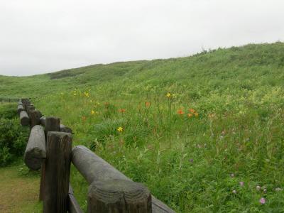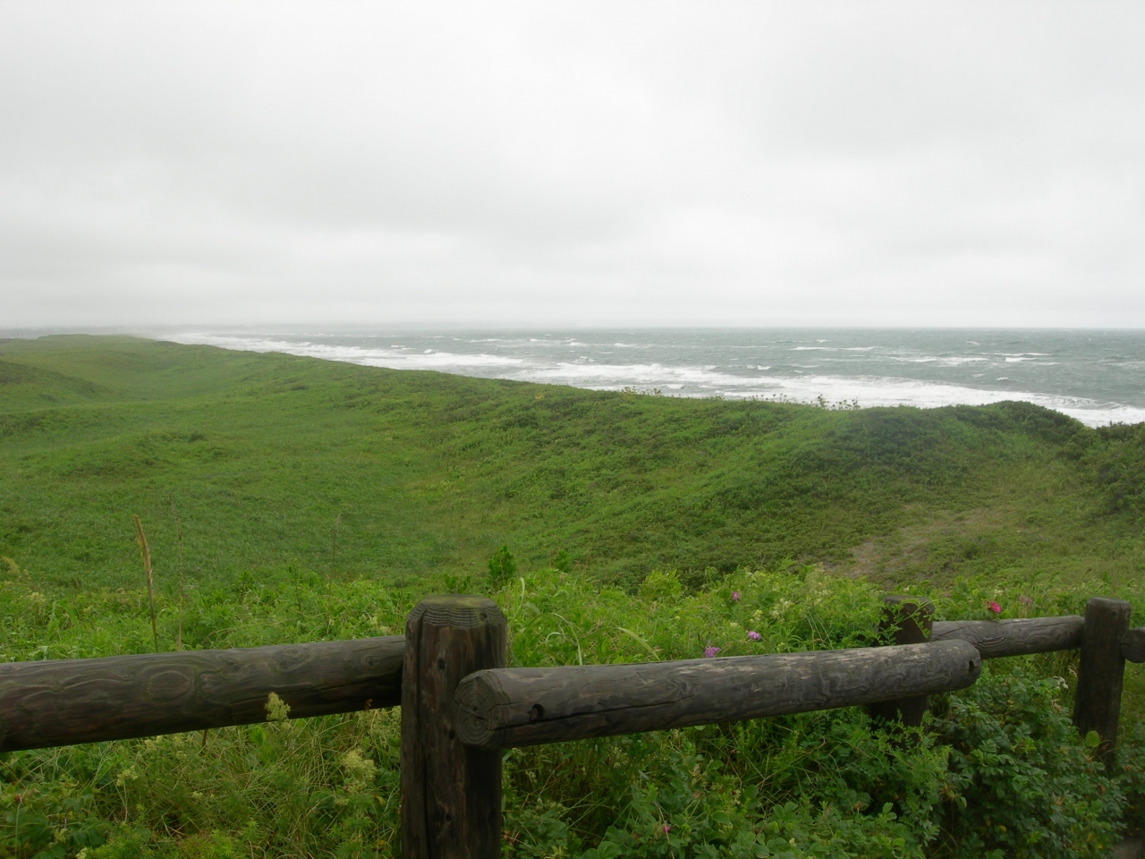 雨は降っているし、少しだけハマナスは咲いていましたが、花があまり咲いていなくて少しがっかりでした。でも海を臨んだ花畑は広々として気持ちのいいものでした。北浜駅を見たり、道沿いのドライブはよかったですよ。