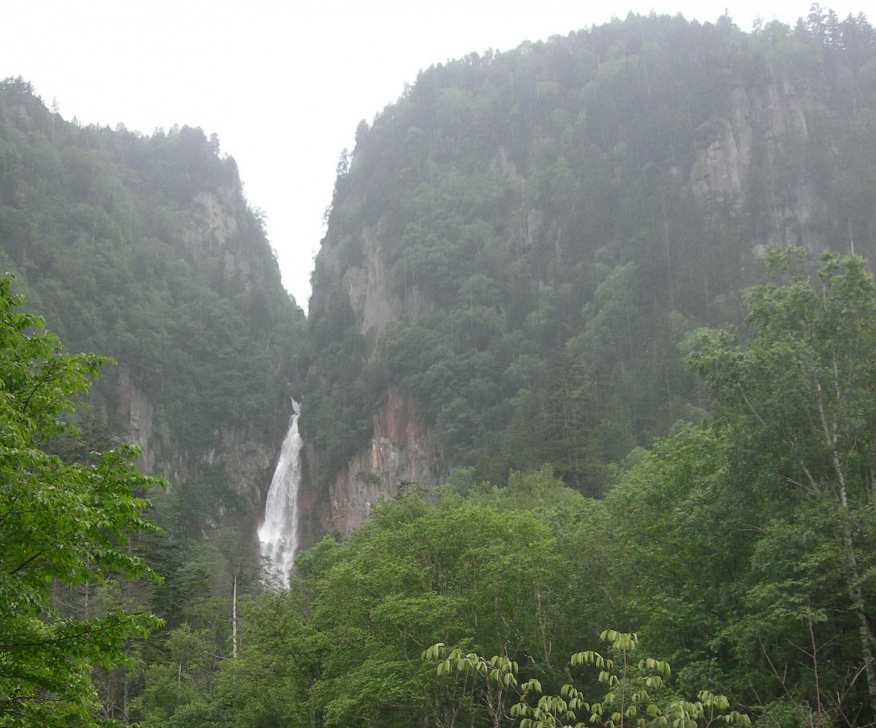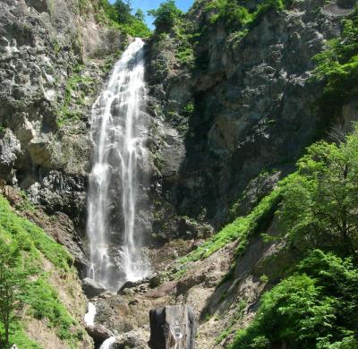 高さ86メートルから落下する「ふくべの大滝」は、白山スーパー林道の滝に中でも、一番大きい滝でした。水の落ちる音が周りに響いて、涼しげで、緑の山の中、オゾンをいっぱい吸わせてもらったような気がしました。